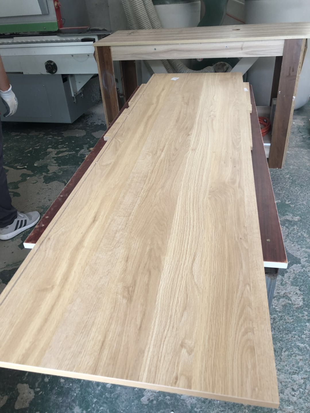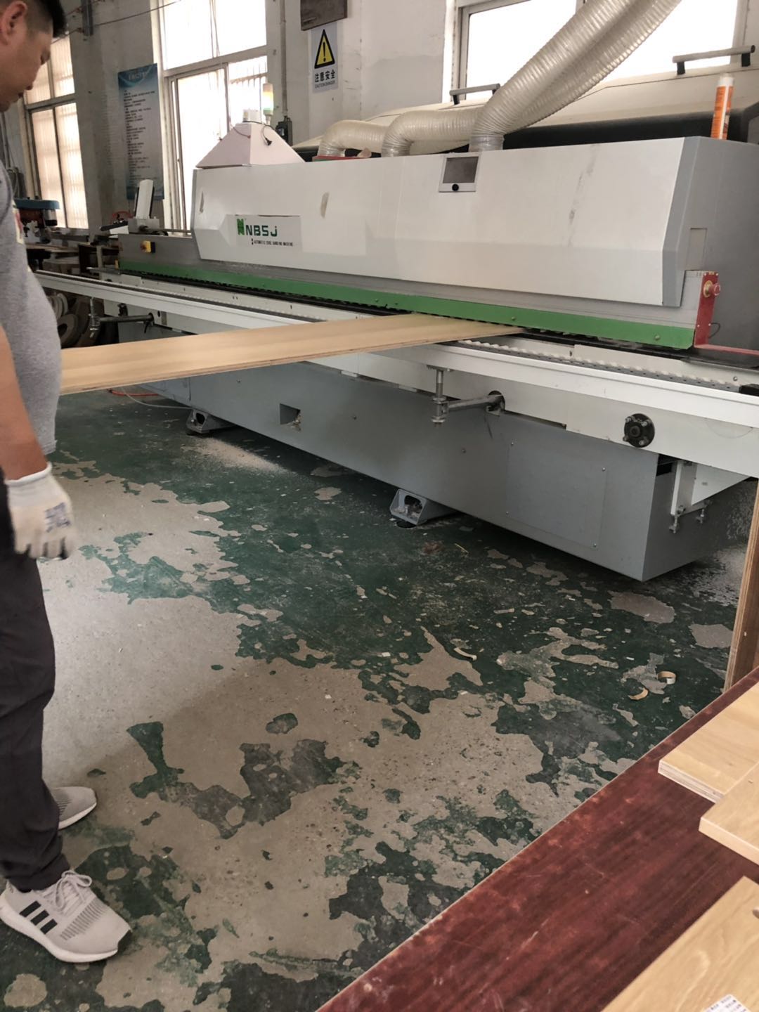 封邊中,采用法國波士熱熔顆粒膠,專業設備封邊溫度達到200°C封出來的邊牢固,沒有爆邊!設備齒輪可調節大小,方便運輸大小不同的板材,封邊條上有小二家居的Logo哦