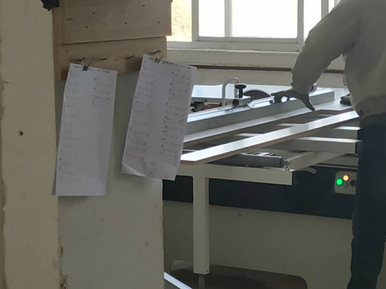 櫥柜板材裁板中,使用機器精確裁板,衣柜板材已經(jīng)裁好板了,待封邊,封邊使用專門的機器封邊哦,板材使用平安樹暖白色實木多層板制作,上面有平安樹高級藍光防偽標(biāo)記。