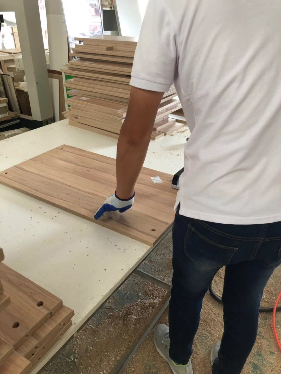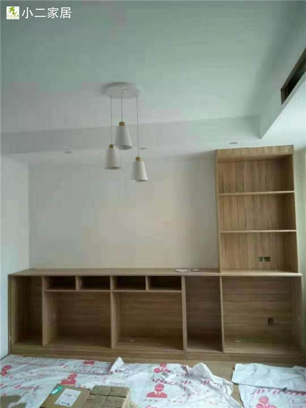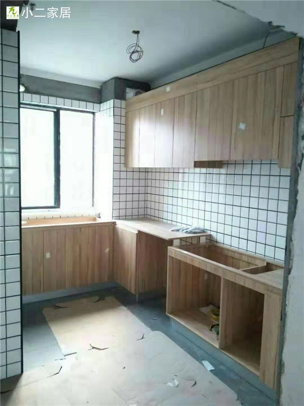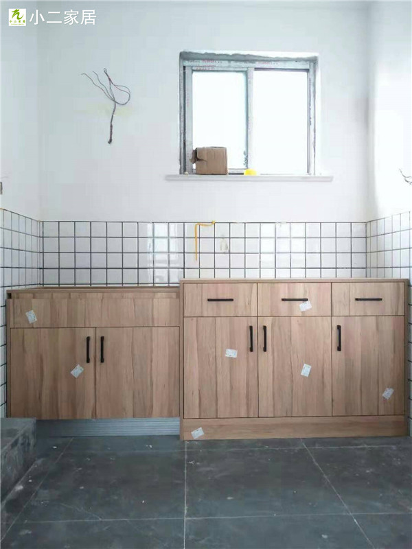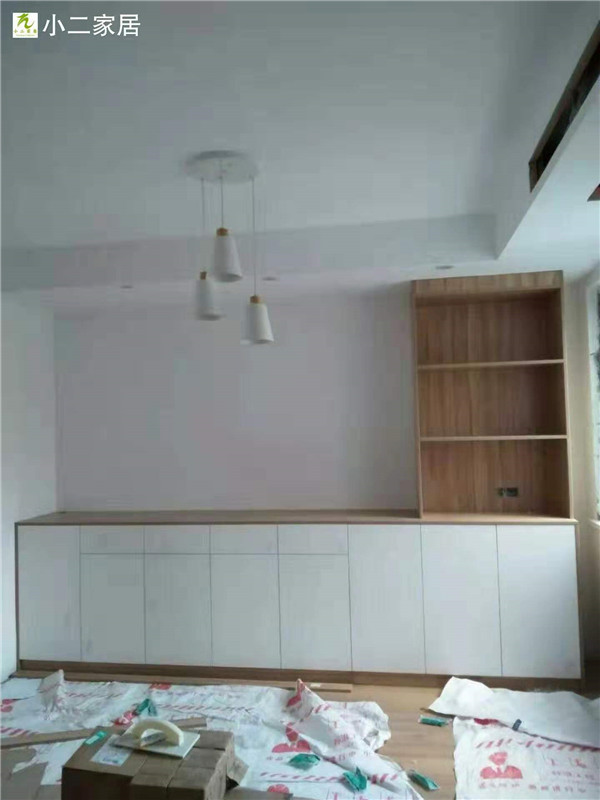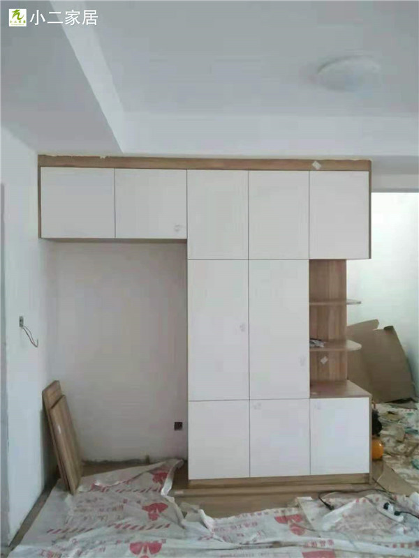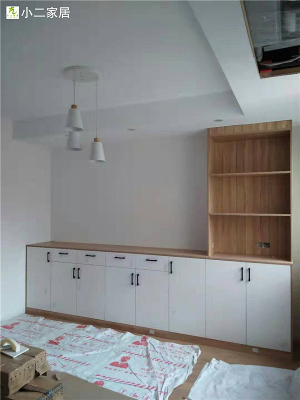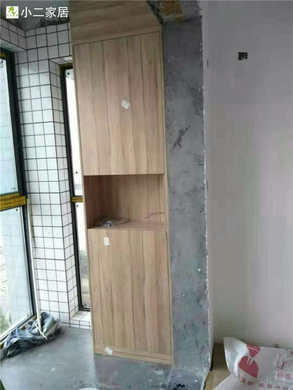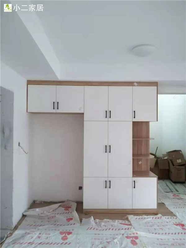 經(jīng)過師傅們幾天的努力,柜子的整體效果出來了,原木色配白色金典搭配。天氣炎熱,師傅們記得多喝點水,注意防暑哦!