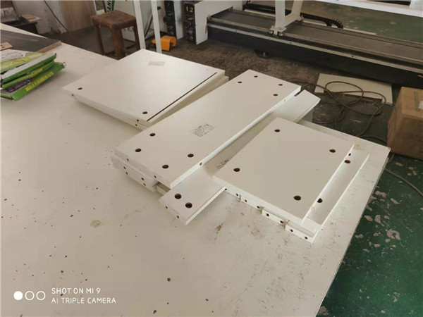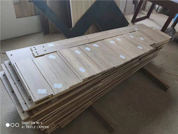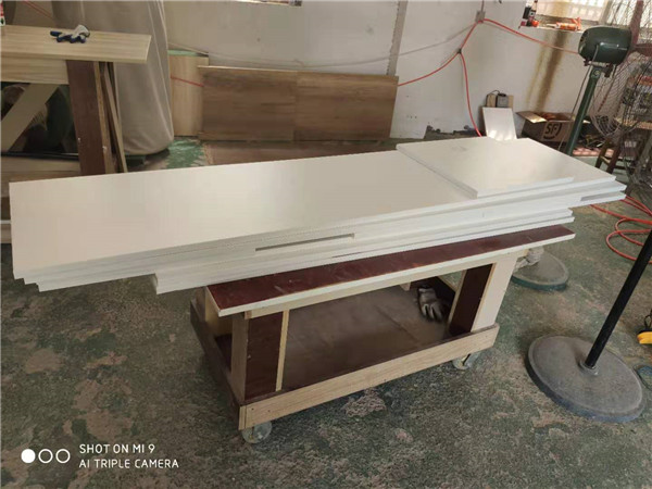 拆板封邊同時進行,這速度就快了,上午師傅們已經把白色門板封好邊,打好孔了。客戶家采用的是平安樹實木多層板,