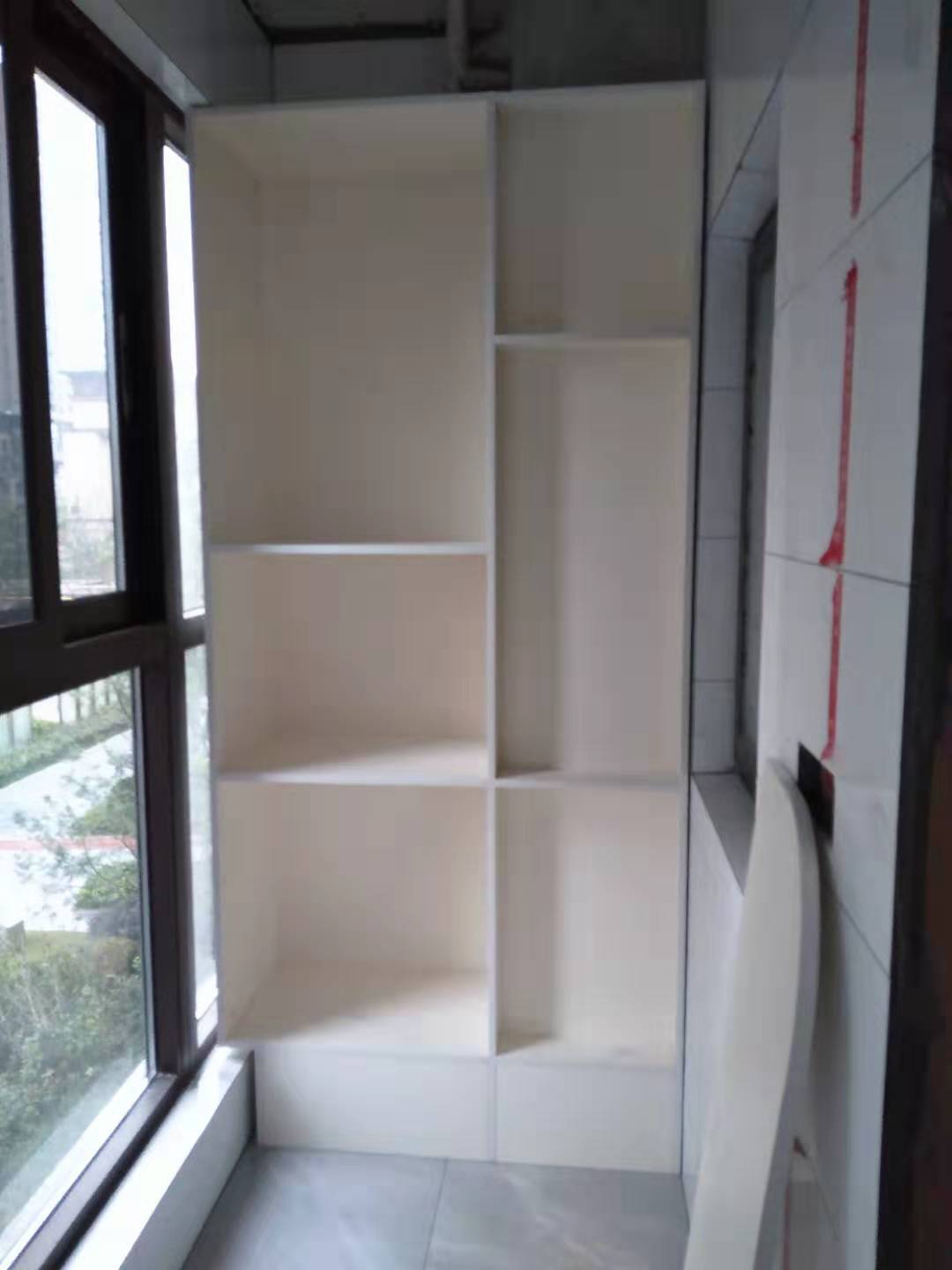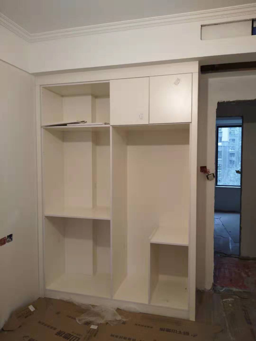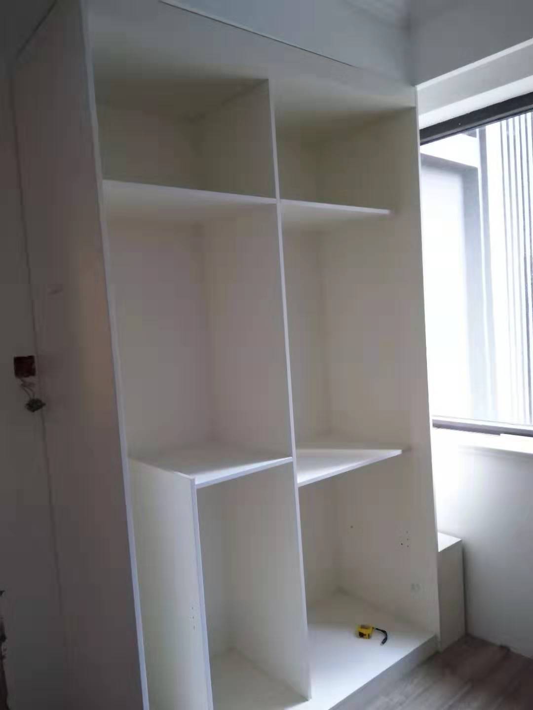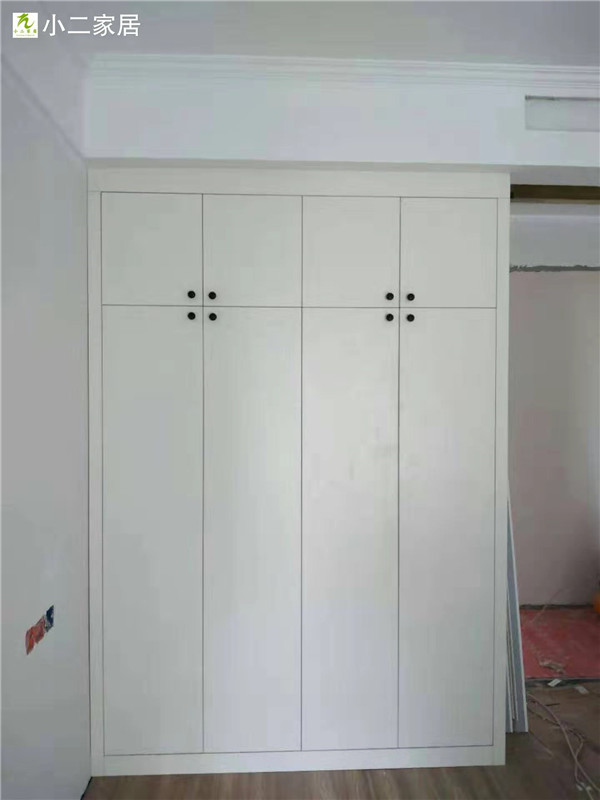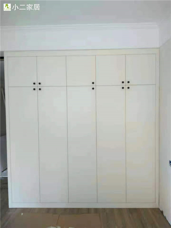 衣柜開板了,板材使用兔寶寶實木多層暖白色E0制作,真材實料,有高級的藍光防偽標識。