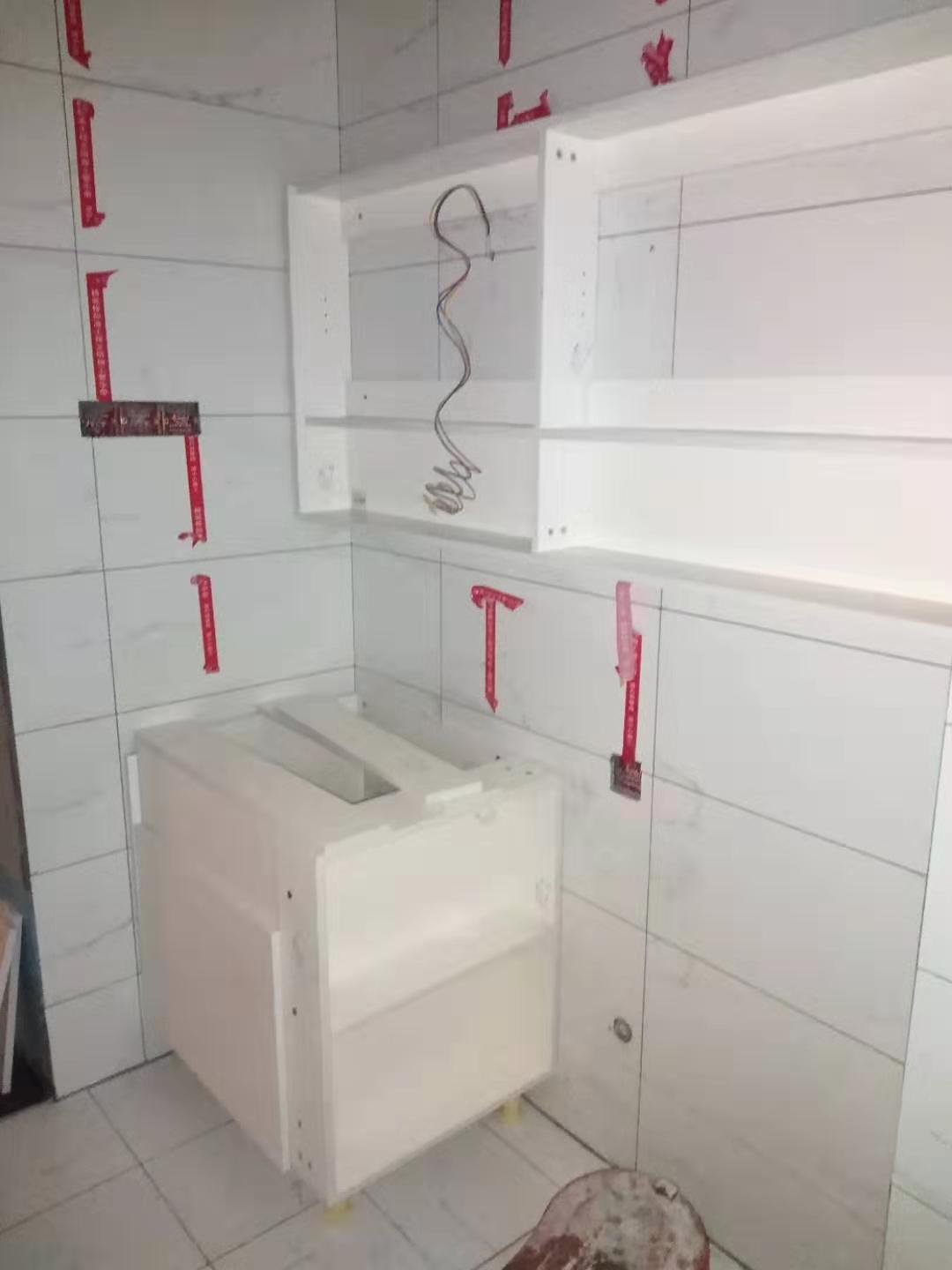 水槽下面都鋪了錫紙,廚房拉籃安裝好后都保護起來了,細節做的很不錯,給師傅們點贊