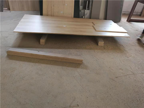 開始制作啦!柜體裁板中,板材使用平安樹實(shí)木多層板,清水橡木E0級制作,有高級的藍(lán)光防偽標(biāo)識哦