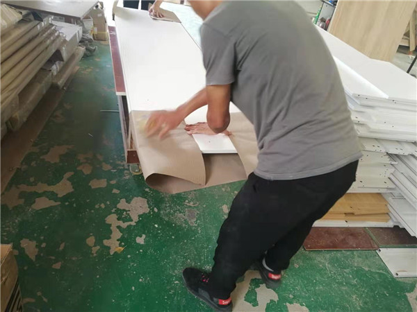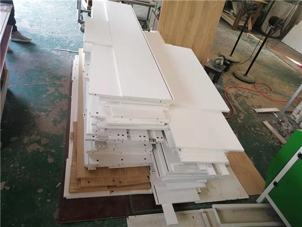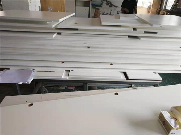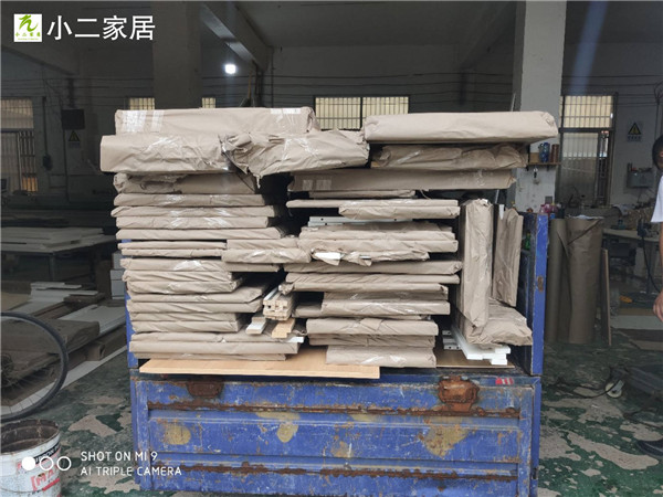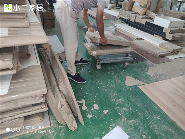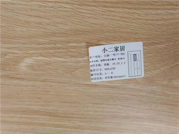 還有部分櫥柜和飄窗柜在裁板中,同時進(jìn)行封邊。封邊采用法國波士熱熔顆粒膠,設(shè)備溫度達(dá)到190°C封出來的邊牢固,沒有爆邊,完美無瑕。每塊板上都貼有小標(biāo)簽,方便后期安裝師傅安裝,封邊條上都帶有小二家居logo的哦!方便后期售后。