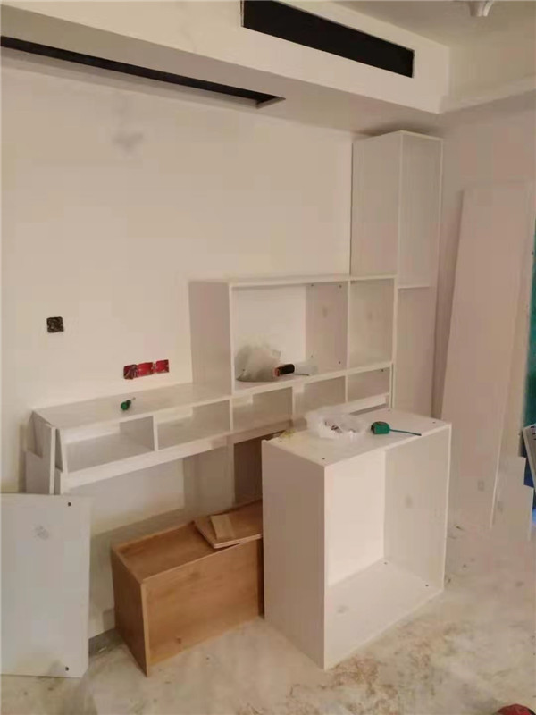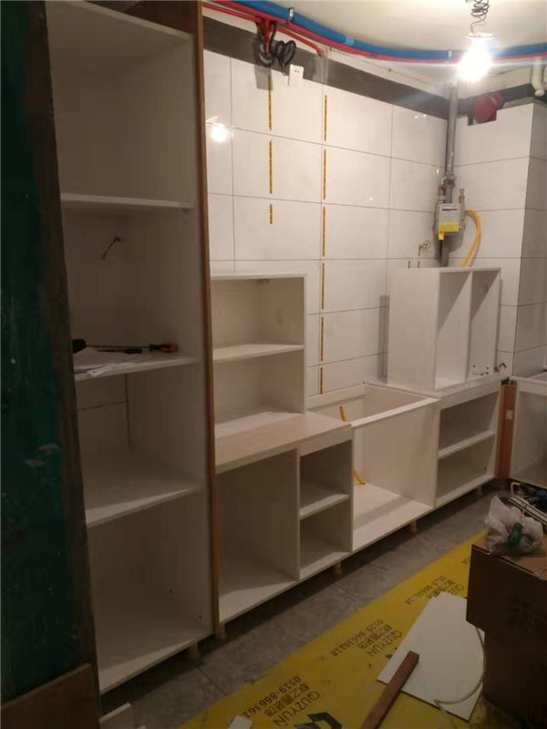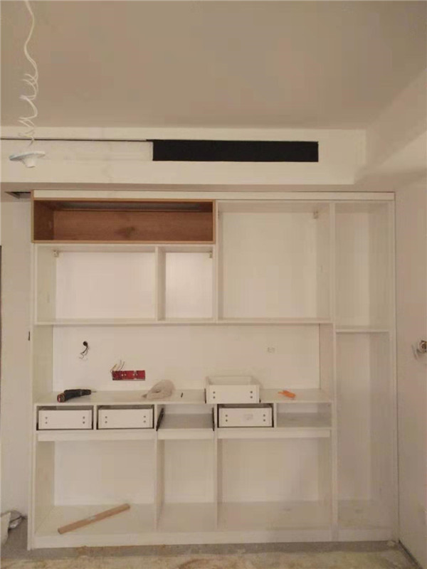 師傅們兩天的勞動成果,柜體基本拼裝完畢了,話說客戶家柜子還蠻多的,后期收納不用愁啦!