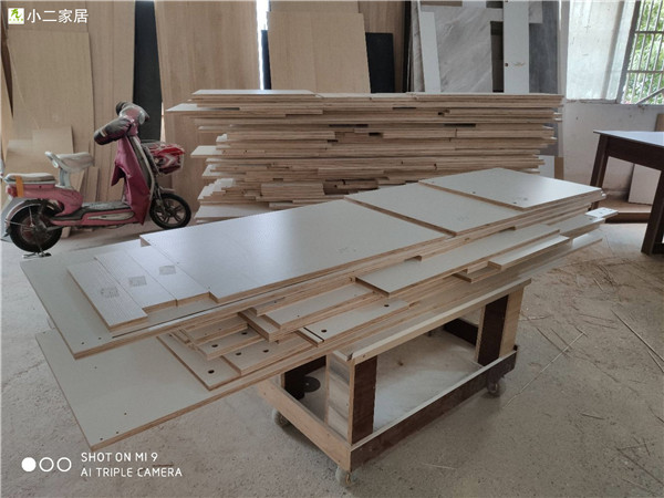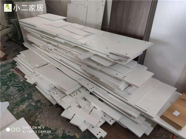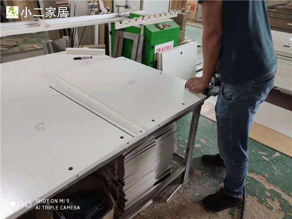封邊采用法國波士熱熔顆粒膠,設備溫度達到190°C封出來的邊牢固,沒有爆邊,完美無瑕。封邊條上都帶有小二家居logo的哦!板材使用平安樹實木多層暖白,有高級的藍光防偽。