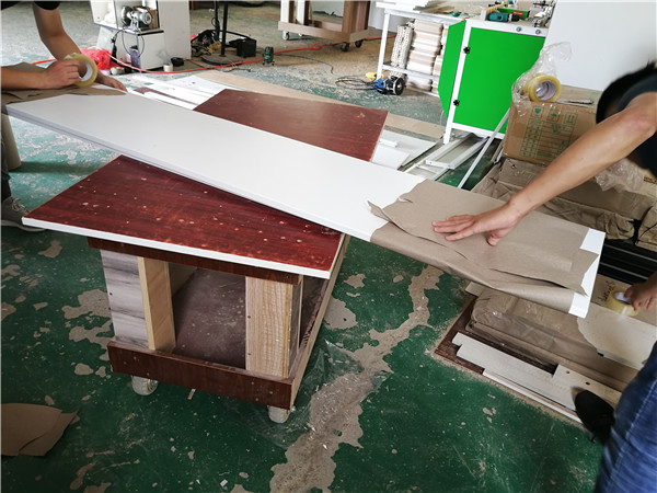 柜體封邊完畢,打孔中。一場秋雨一場寒,現在師傅們干活比較輕松啦!