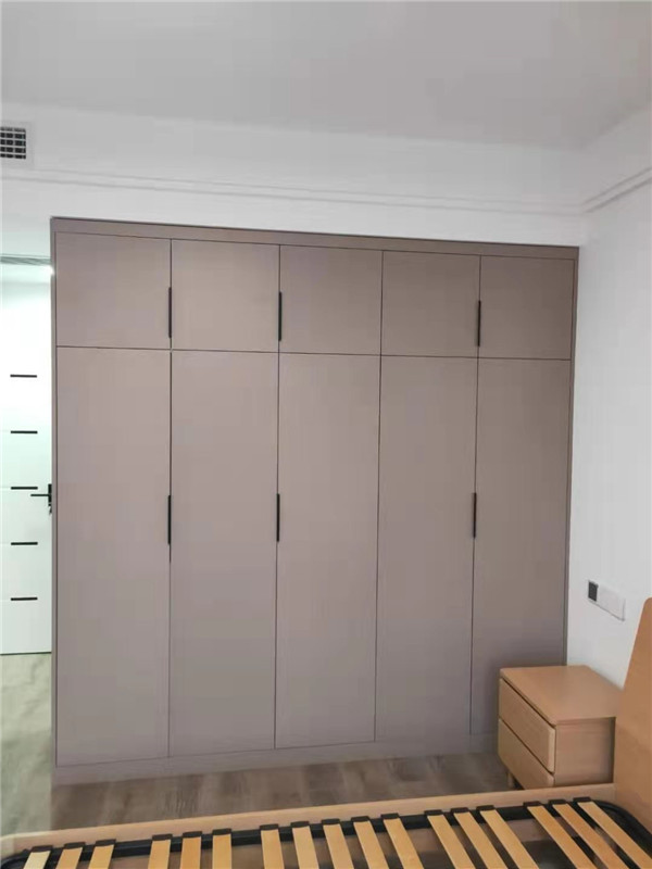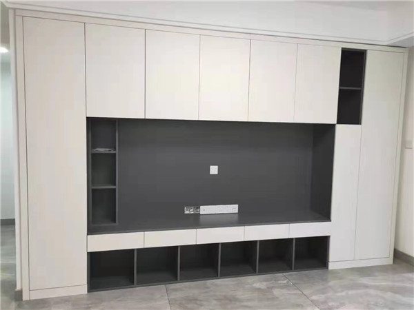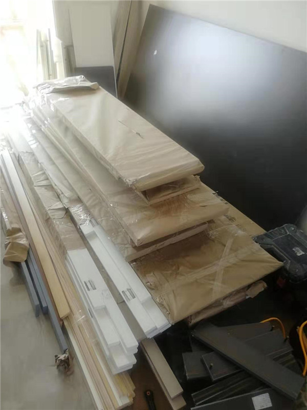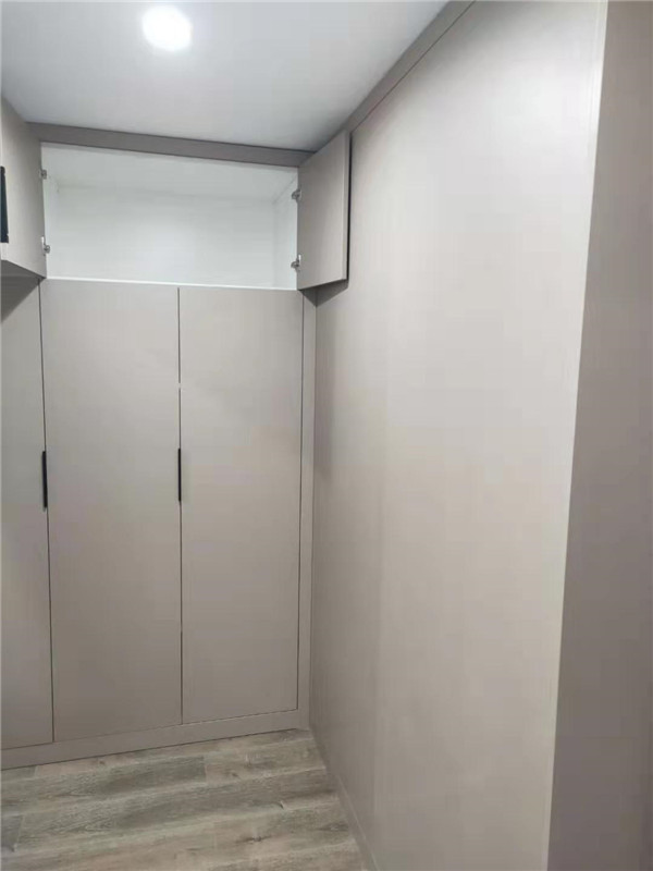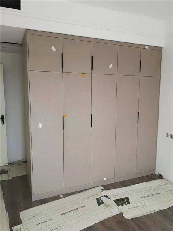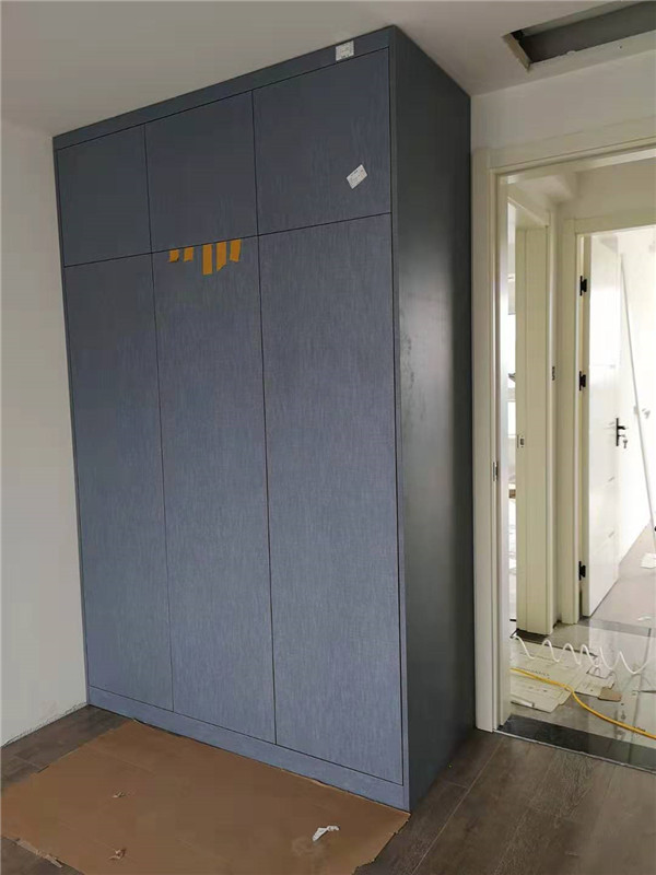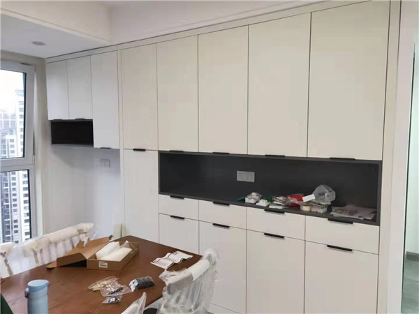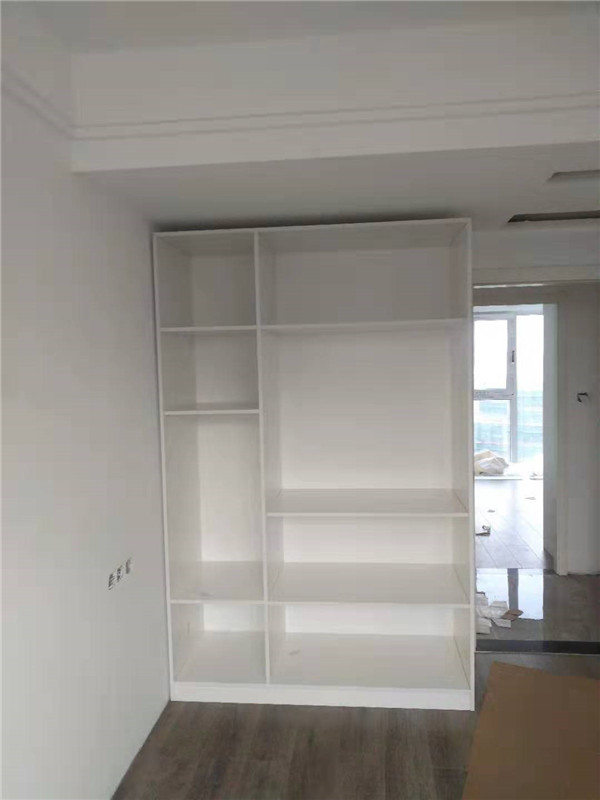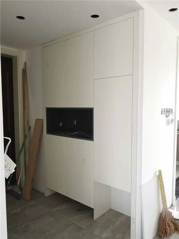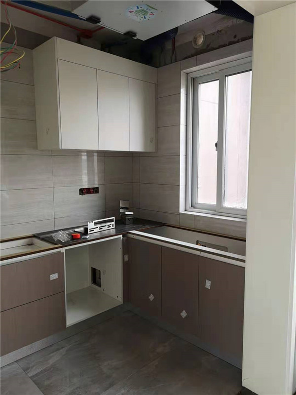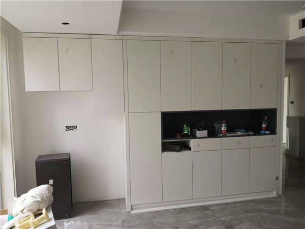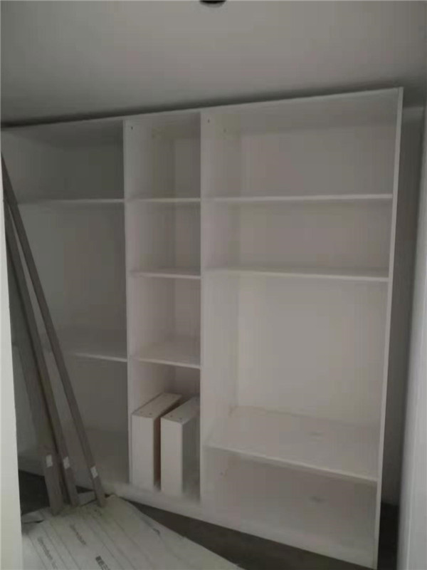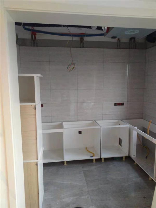 師傅兩天的勞動成果,柜體已拼裝的差不多了,今天把門安排上,柜子的整體效果就出來了,一起期待最后的安裝效果吧!