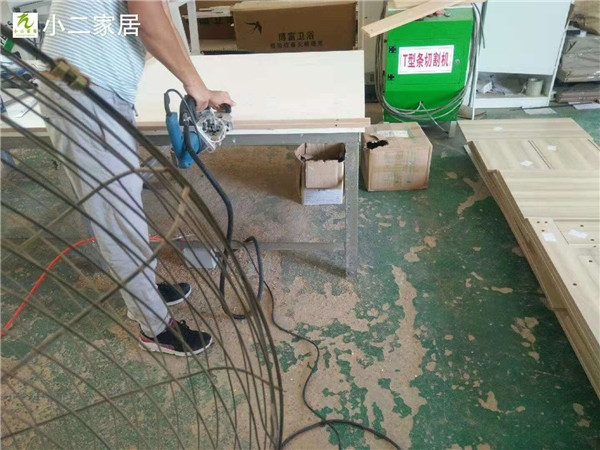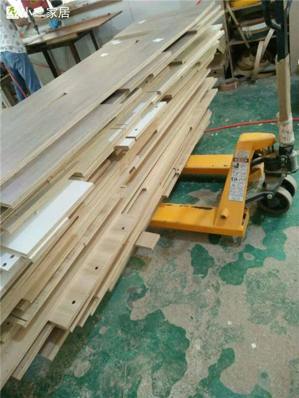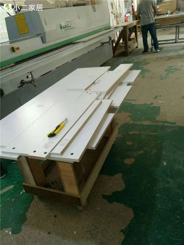 開始封邊啦,師傅們真給力,現在封邊的是電視柜所用的板材,客戶家用的是平安樹的實木多層板,