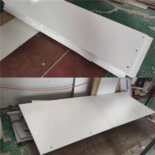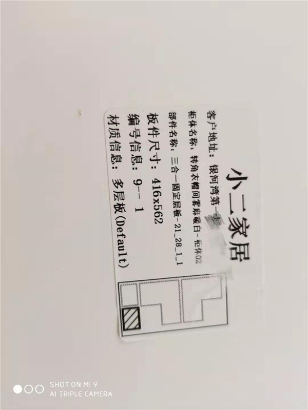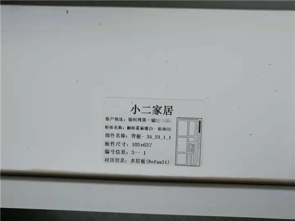 設備溫度達到190°C封出來的邊牢固,沒有爆邊,請看細節圖。每一塊板材上都帖有小標簽哦!方便安裝師傅后期安裝。
