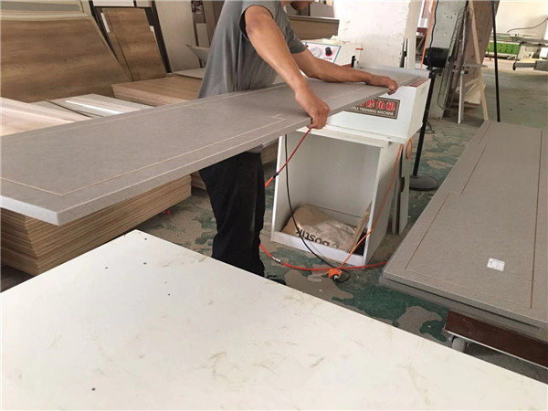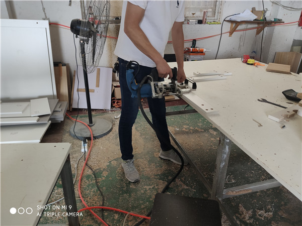 部分門板抽面倒角中,倒角的好處:第一整體效果美觀,第二以防后期開門磕碰到。