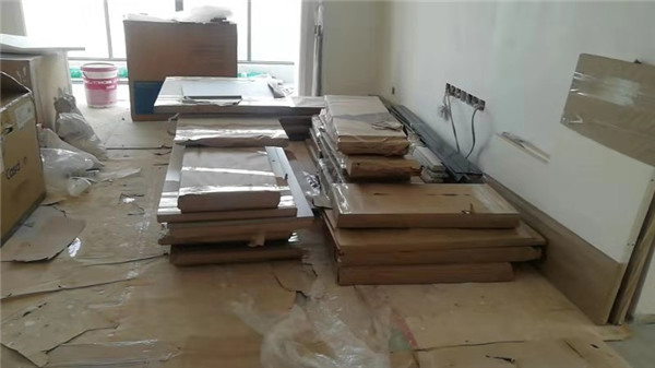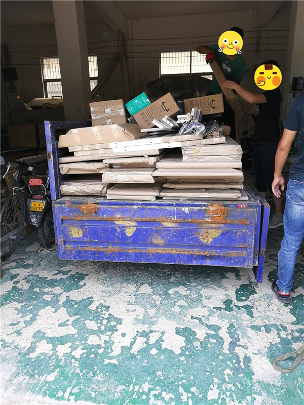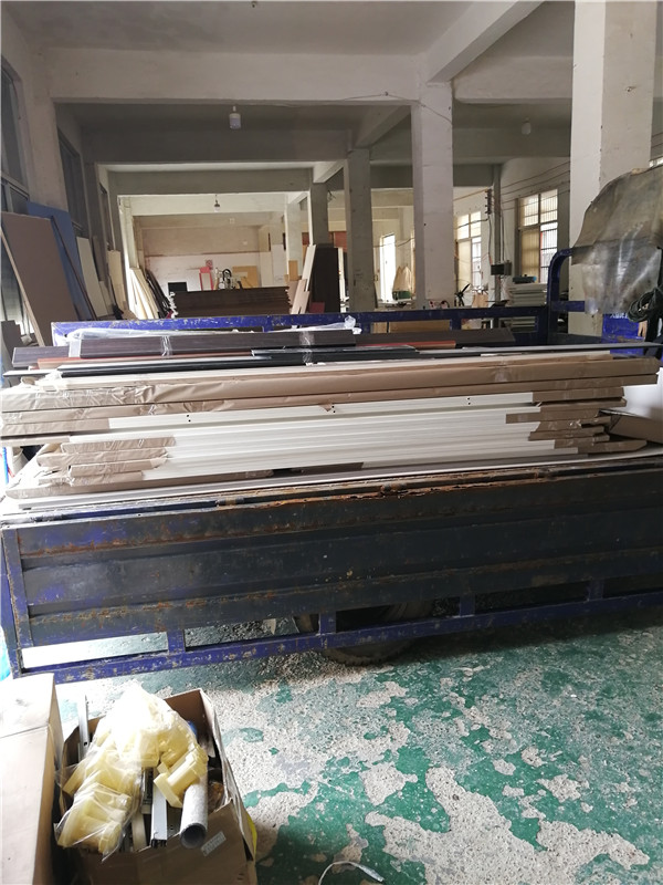 上午已經封好一部分柜體跟門板了,以放置打包區等待打包。下午封邊繼續,封邊采用法國波士熱熔顆粒膠,