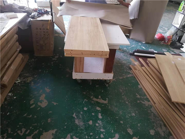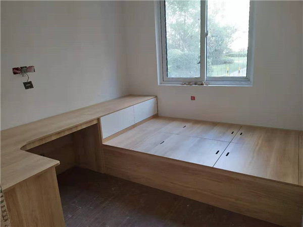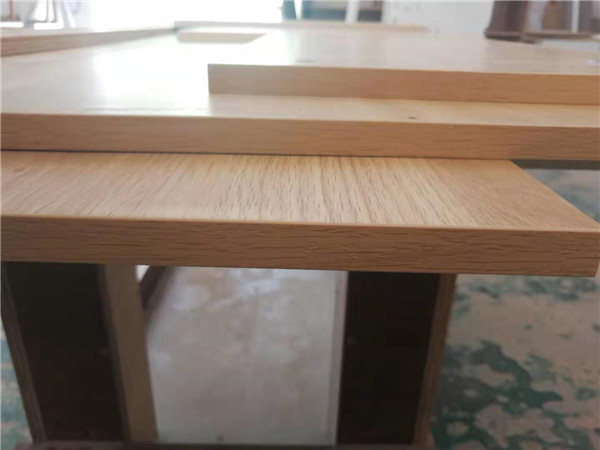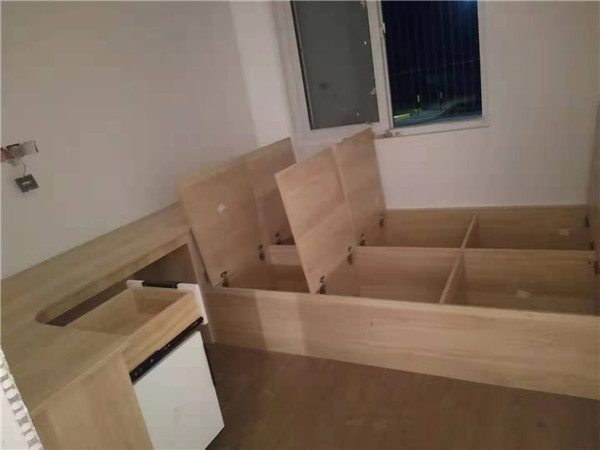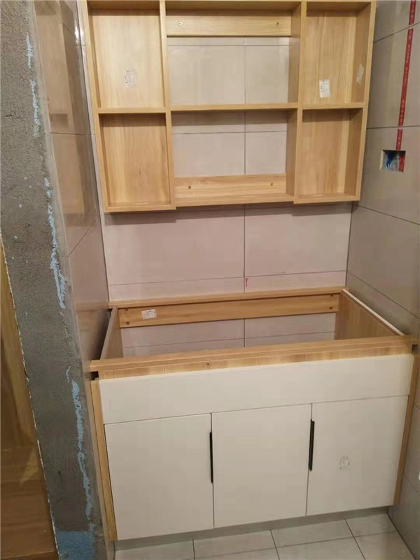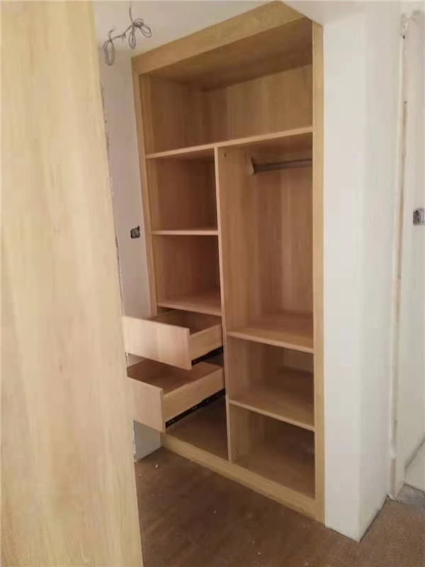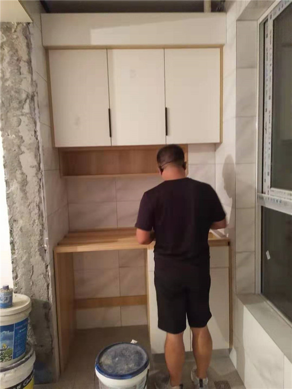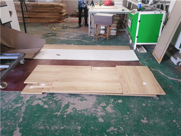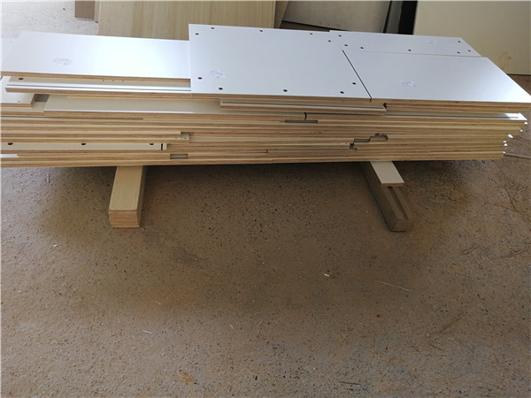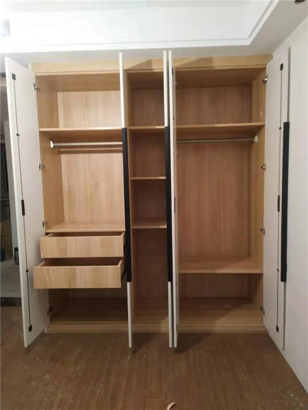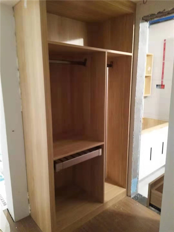 開始制作啦,專業(yè)設備裁板,沒有爆邊。櫥柜、衣柜分別使用平安樹霧麻暖白、清水橡木實木多層板E0級制作,帶有高級的藍光防偽標識,更安心!