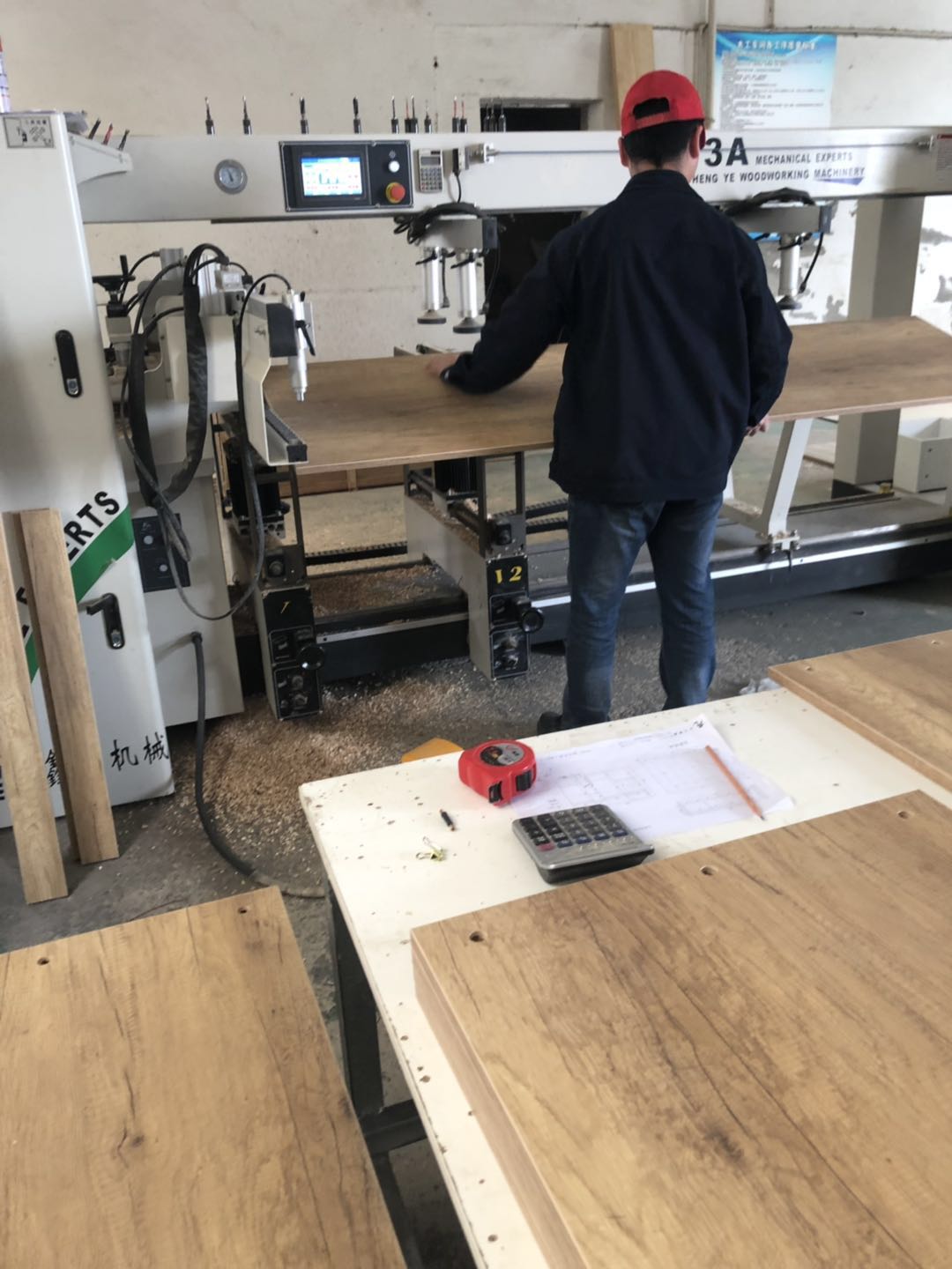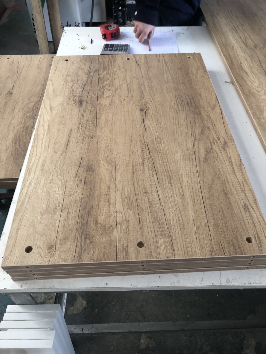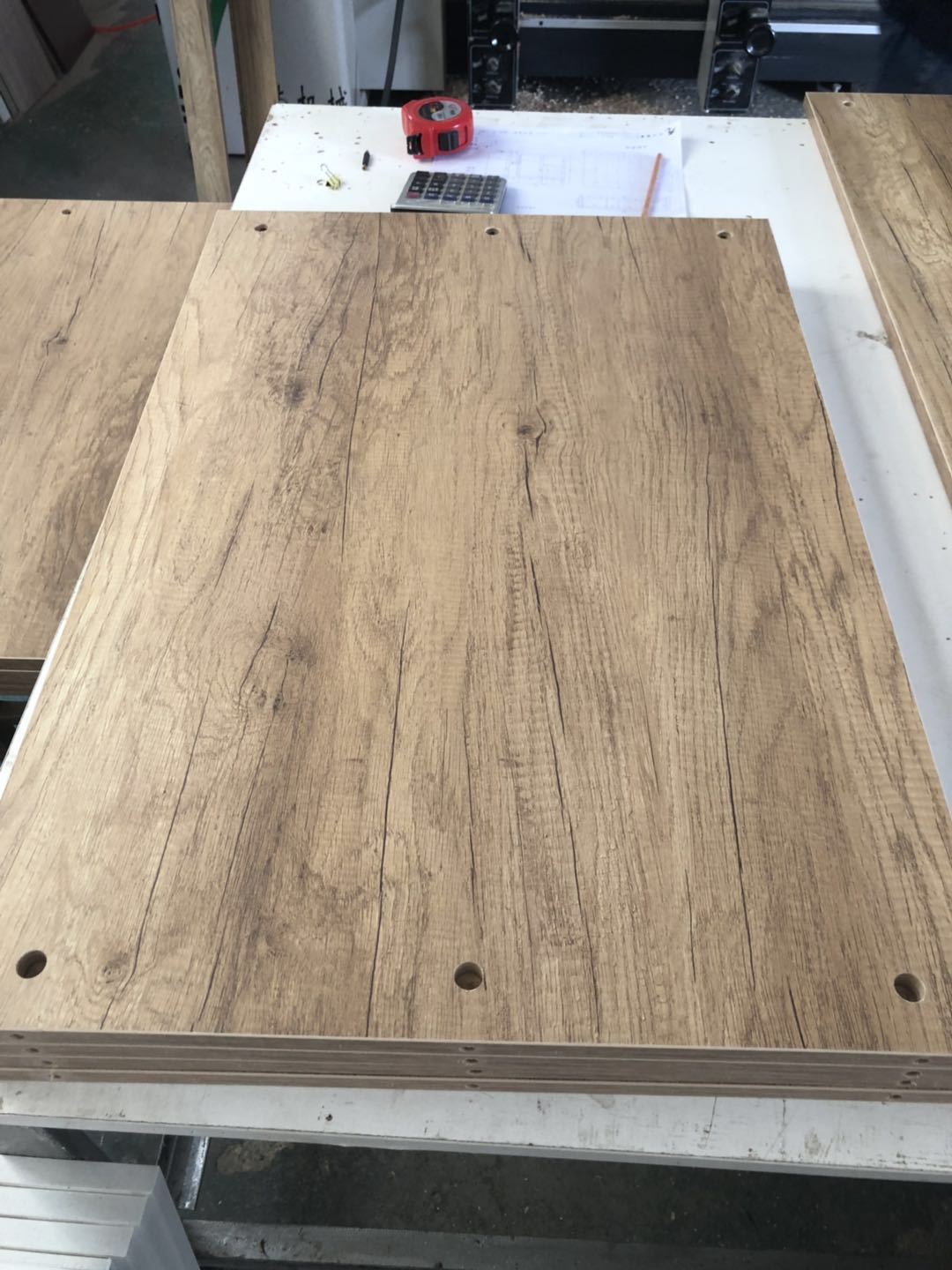 衣柜開始打孔啦,不得不說師傅們還是挺速度的,專業設備打孔,打出來的孔圓潤,沒有爆邊~