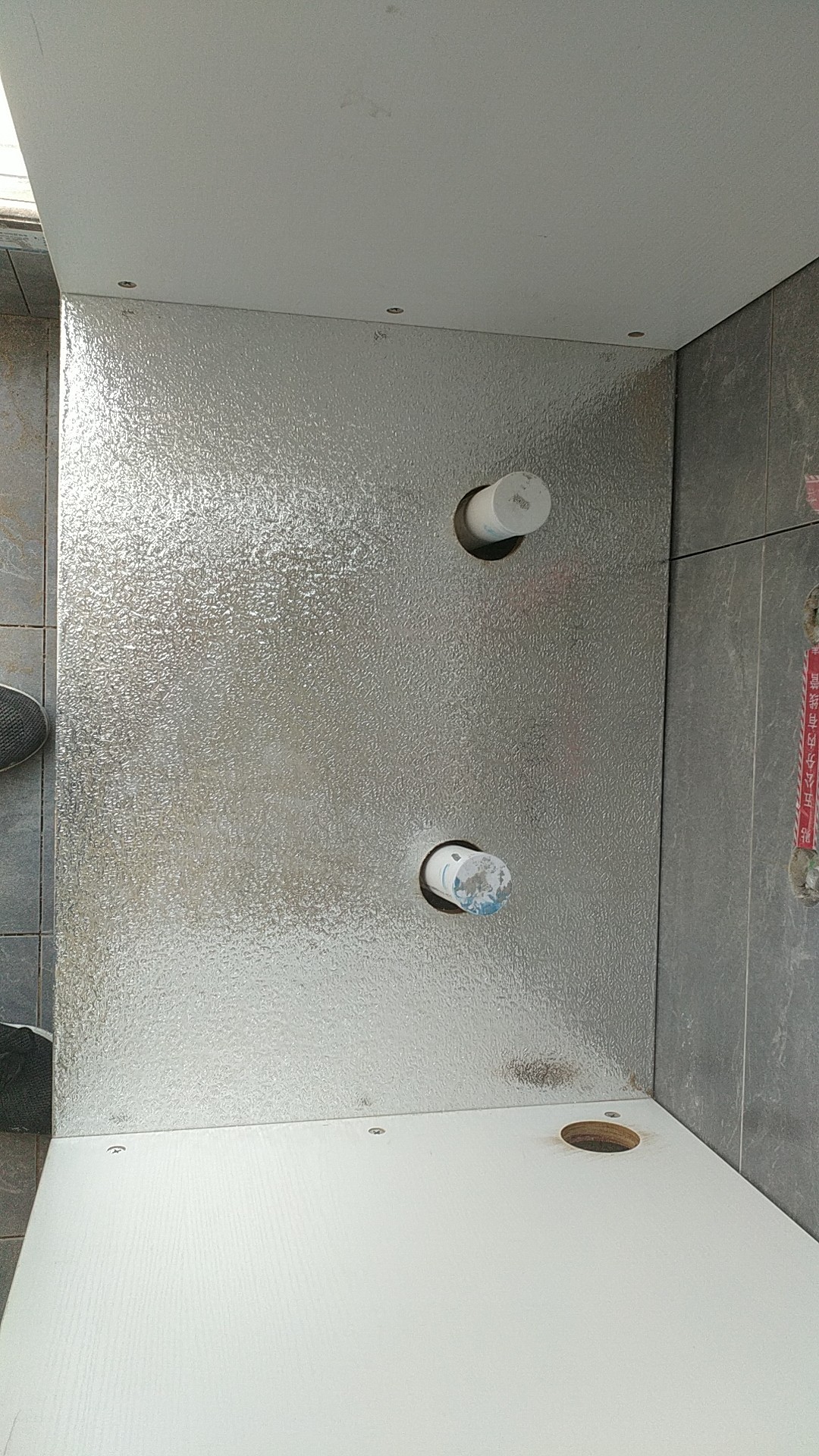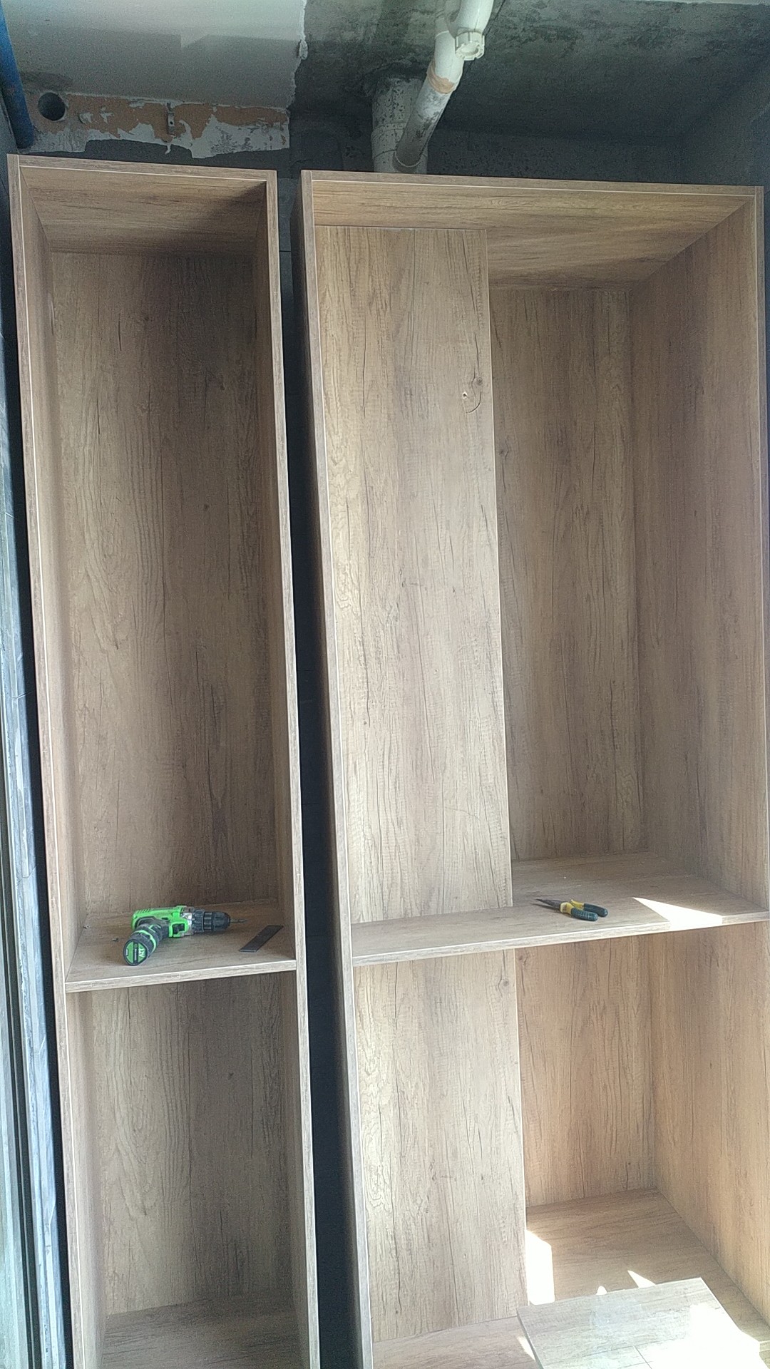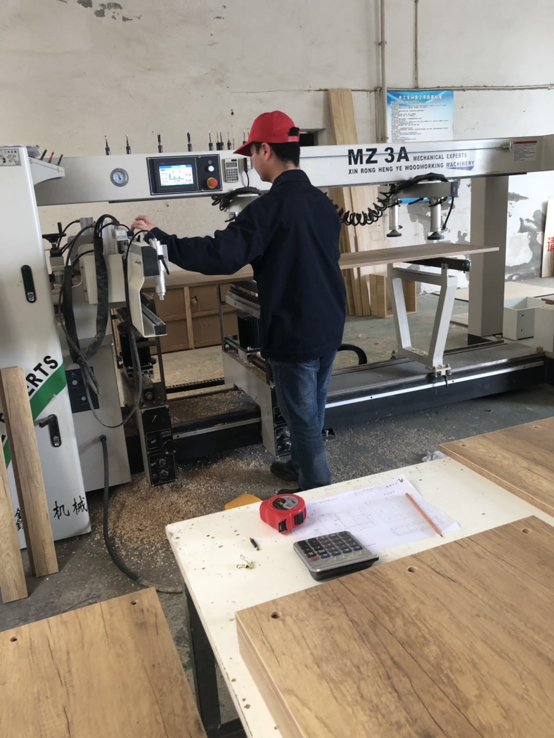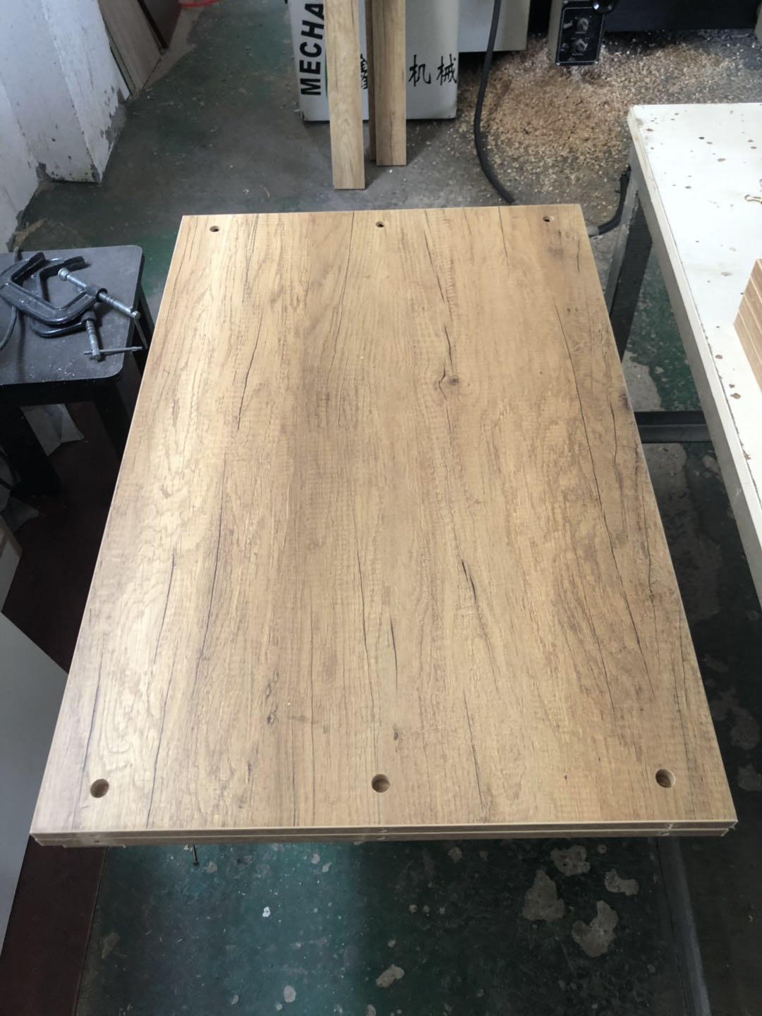 衣柜開始打孔啦,不得不說師傅們還是挺速度的,專業設備打孔,打出來的孔圓潤,沒有爆邊~