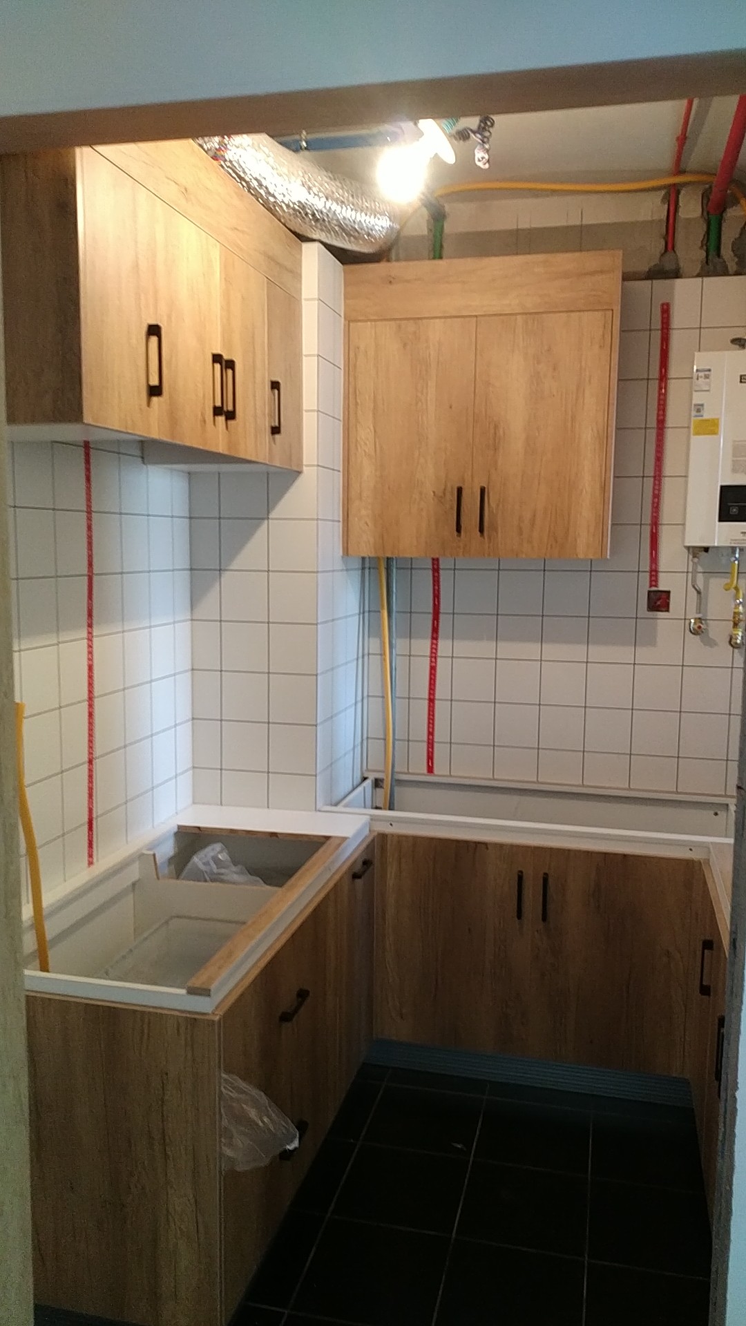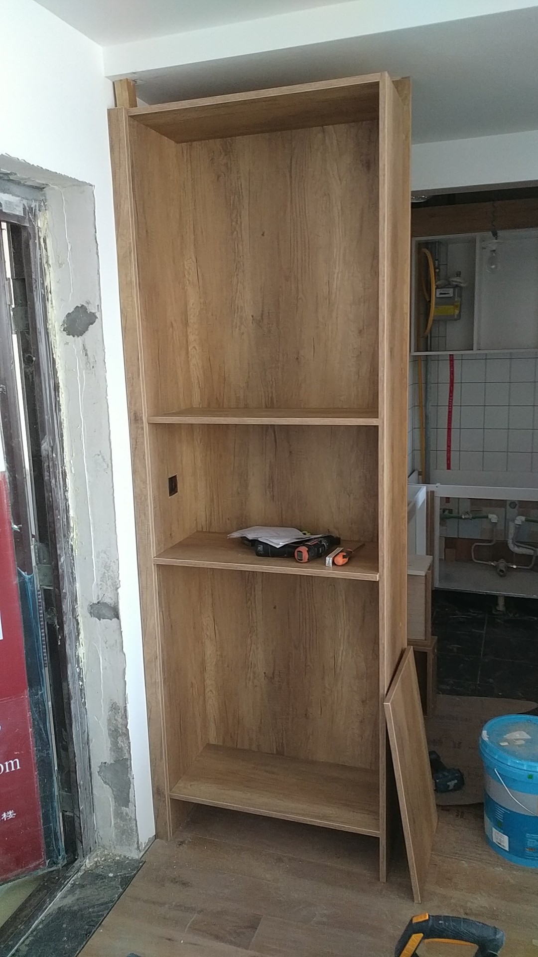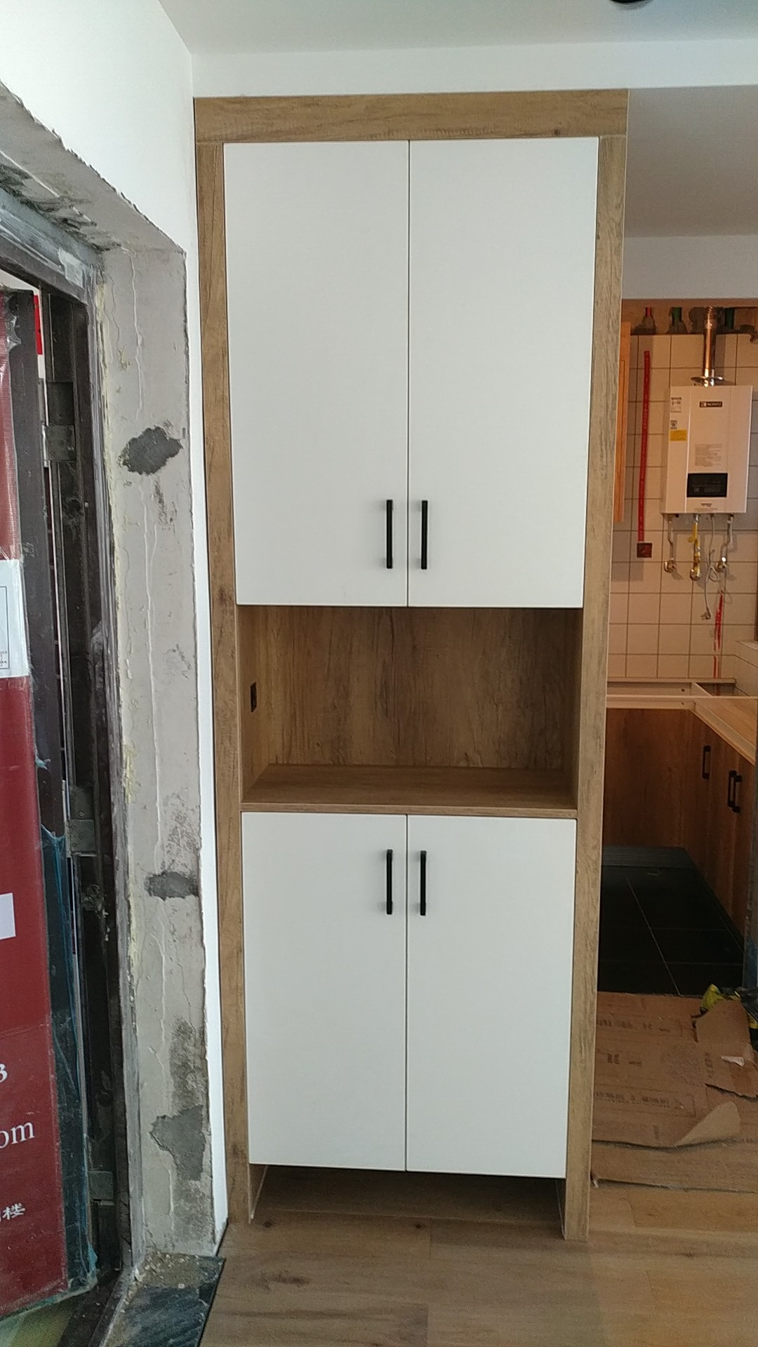 安裝進行中,諾米鉸鏈,海蒂詩導軌,ABS尼龍柜腳,和居拉手,都是小二家居的標配,柜體已經安裝一部分了,差不多明天效果就出來了,一起期待拼裝的完美組合吧