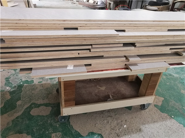 開始制作啦!柜體裁板中,板材使用平安樹實木多層板皮紋E0級制作,有高級的藍光防偽標識哦