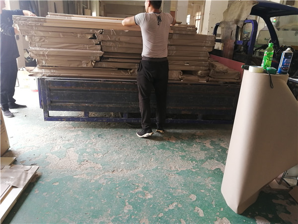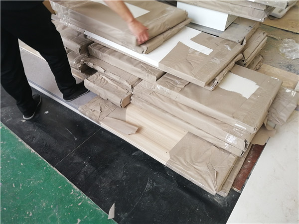 開始封邊啦,封邊采用法國波士熱熔顆粒膠,設備溫度達到200°C封出來的邊牢固,沒有爆邊,完美無瑕。每塊板上都貼有小標簽,方便后期安裝師傅安裝,封邊條上都帶有小二家居logo的哦!方便后期售后。