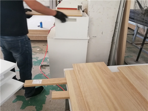 開始制作啦!柜體裁板中,專業設備裁板,沒有爆邊,線條筆直,鞋柜板材使用平安樹實木多層板,
