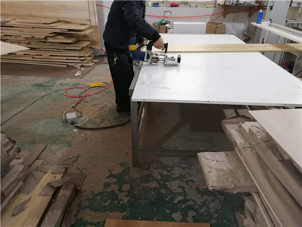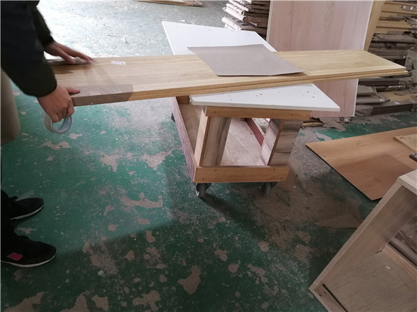 開(kāi)始制作啦!柜體裁板中,板材使用平安樹(shù)實(shí)木多層板,清水橡木E0級(jí)制作,有高級(jí)的藍(lán)光防偽標(biāo)識(shí)哦