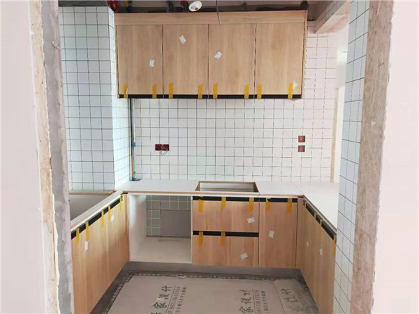 【小二跟單2589】蔚藍(lán)天地,雙飾面柜門(mén)加實(shí)木多層柜體櫥柜等,安裝完畢