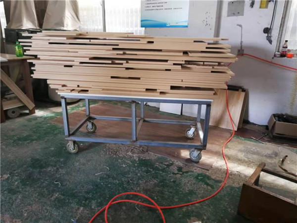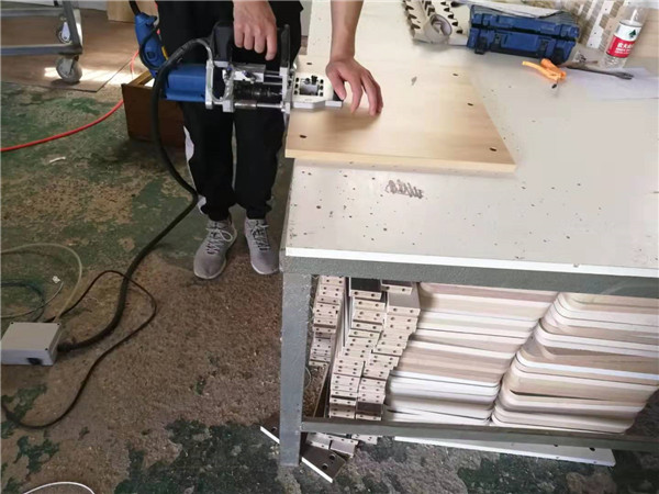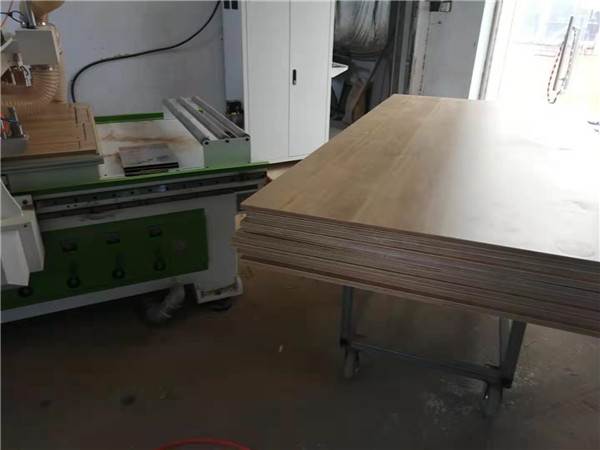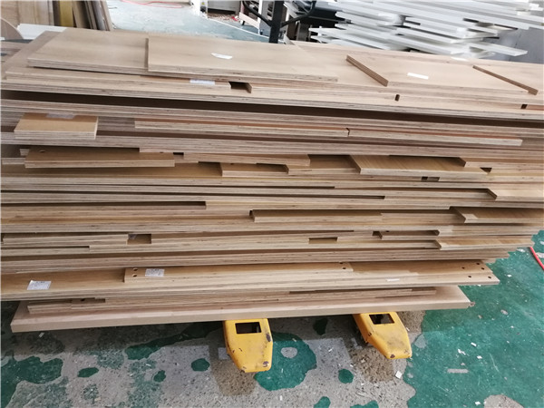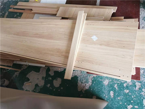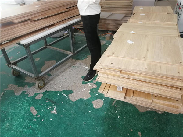 開始制作啦!柜體裁板中,板材使用平安樹實木多層板,清水橡木E0級制作,有高級的藍(lán)光防偽標(biāo)識哦。