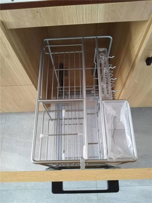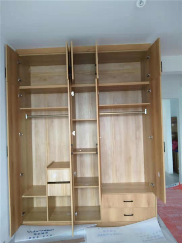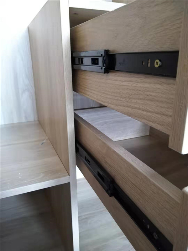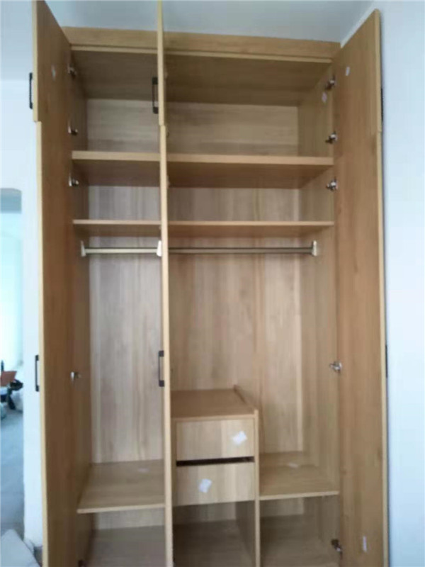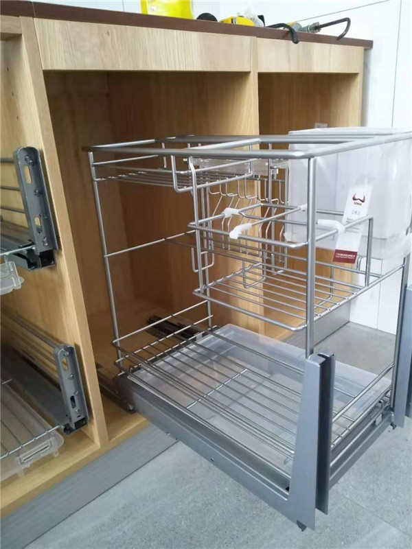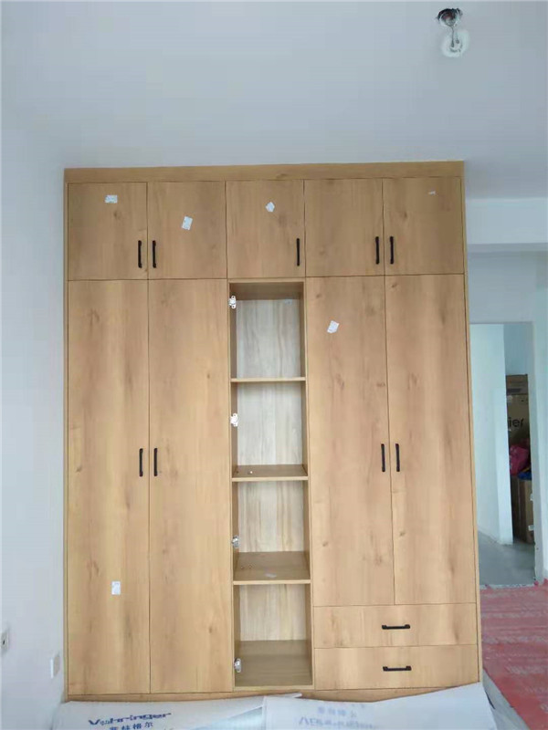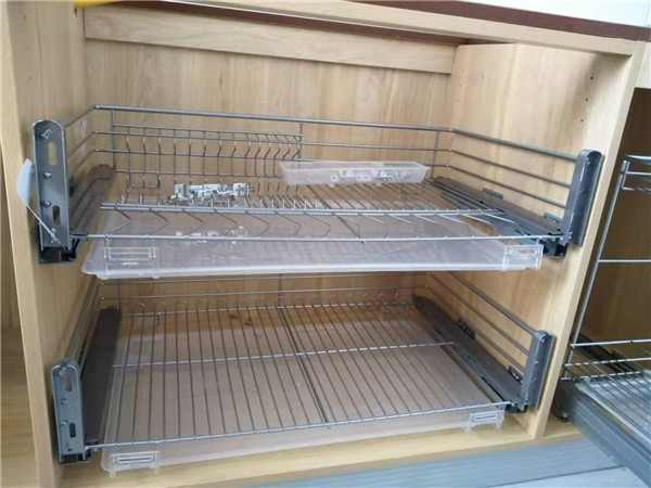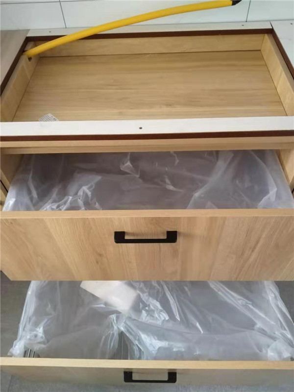 標(biāo)配五金:ABS尼龍柜腳,諾米拉籃三件套,海蒂詩導(dǎo)軌,諾米鉸鏈,索菲亞衣桿。拉手對得整齊的。