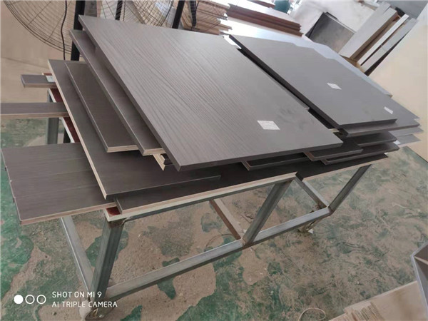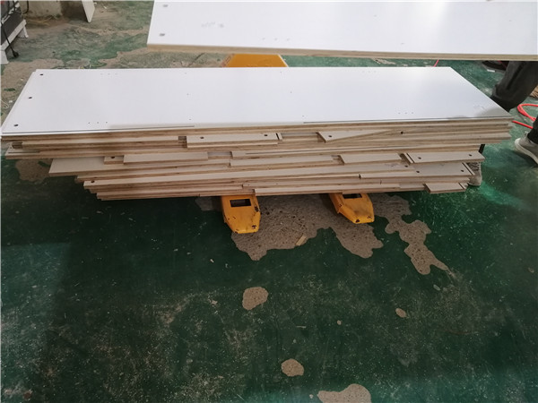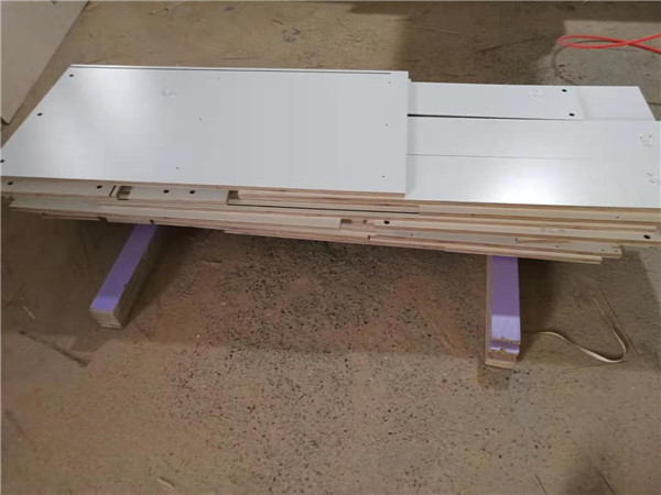 開始制作啦!柜體裁板中,專業設備裁板,沒有爆邊。板材使用平安樹實木多層板E0級制作,有高級的藍光防偽標識哦