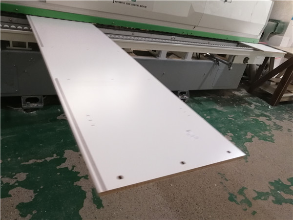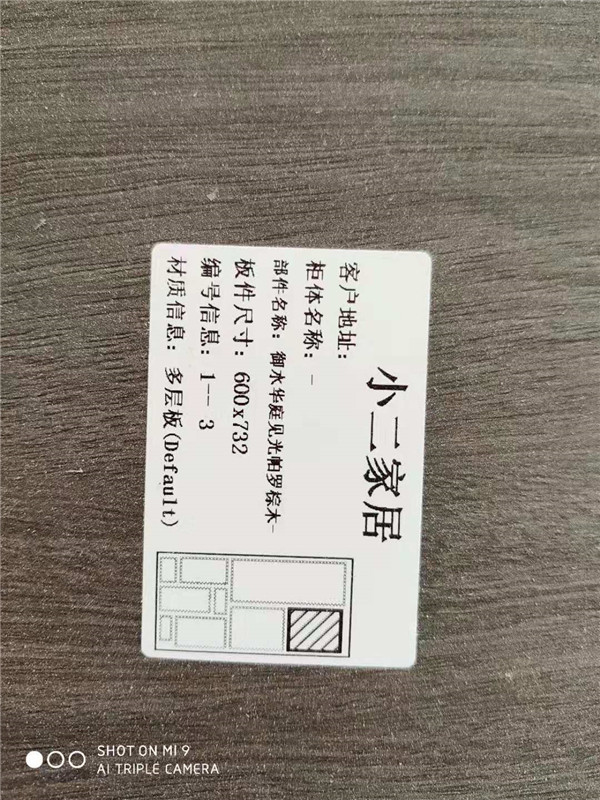 開始封邊啦!封邊采用法國波士熱熔顆粒膠,設備溫度達到200°C封出來的邊牢固,沒有爆邊,完美無瑕。每塊板上都貼有小標簽,方便后期安裝師傅安裝,封邊條上都帶有小二家居logo的哦!方便后期售后。