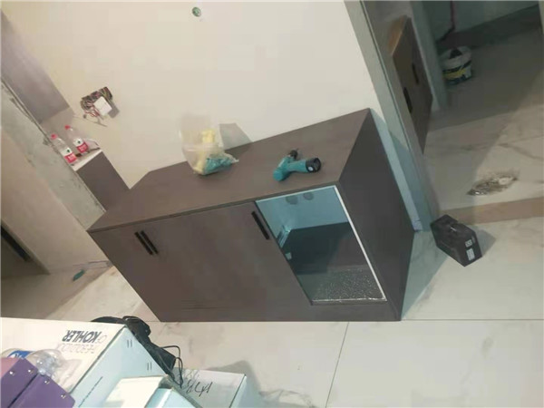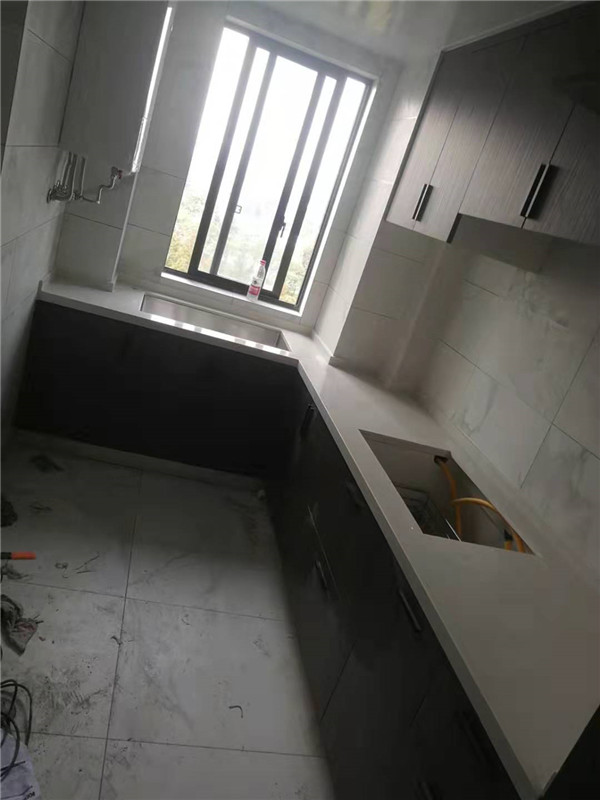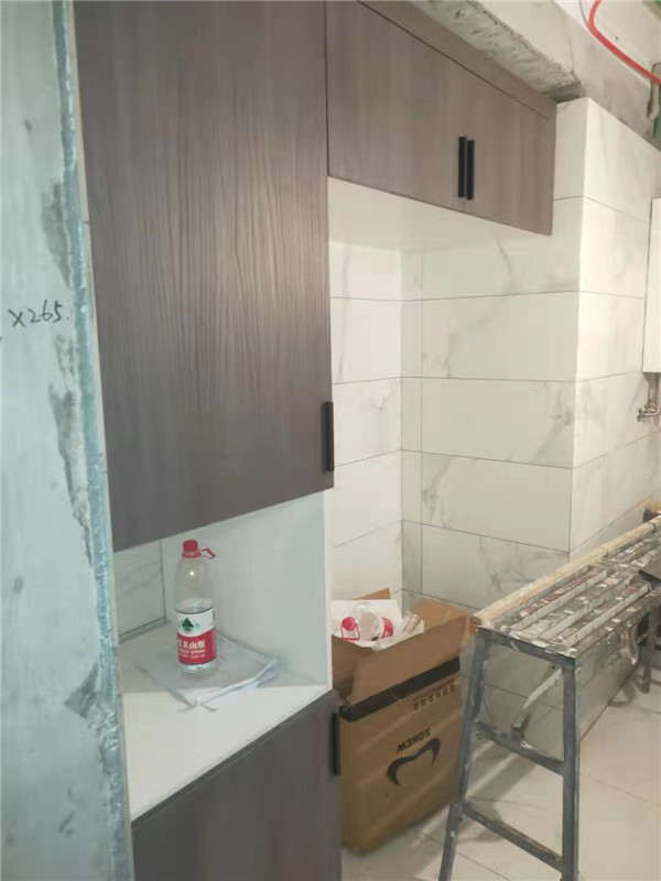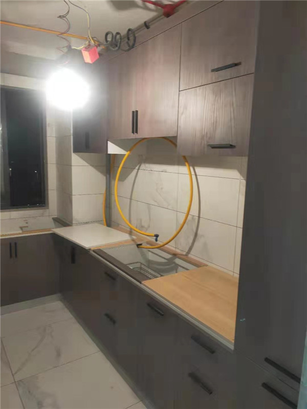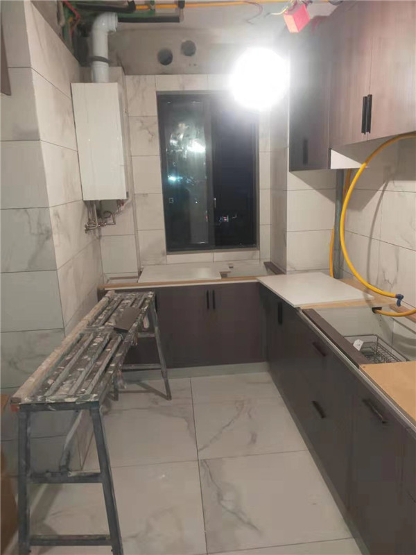 柜子安裝結束,還有一些問題后期售后一并處理。還剩臺面的安裝,期待整體效果
