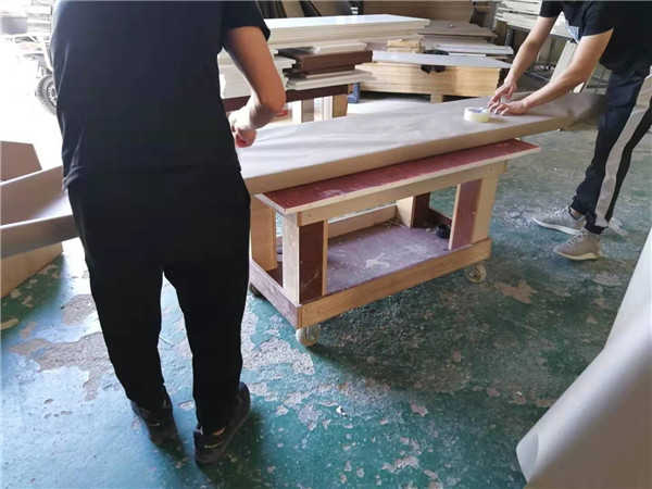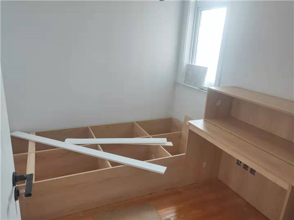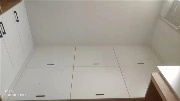 封邊采用法國波士熱熔顆粒膠,封出來的邊更牢固。榻榻米柜體業(yè)主選擇了兔寶寶品牌,封邊可見。每塊板上都貼有小標(biāo)簽,方便后期安裝師傅安裝。