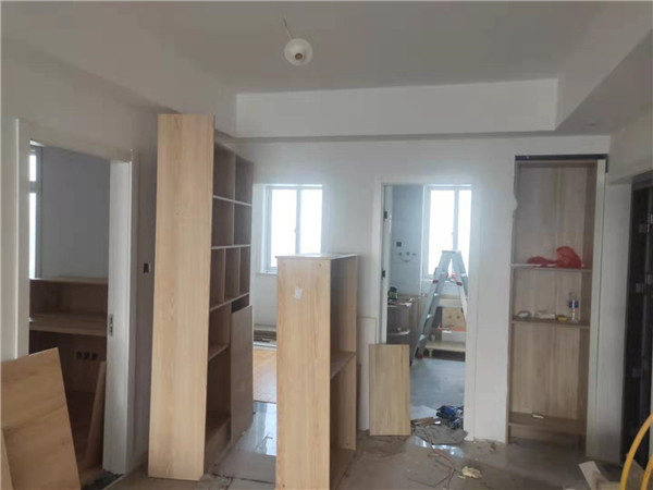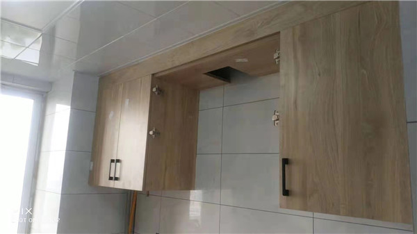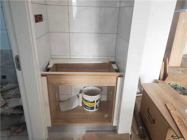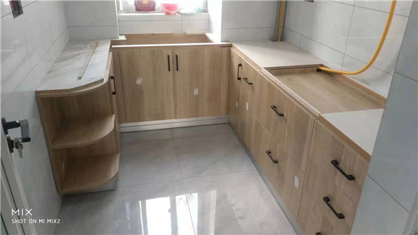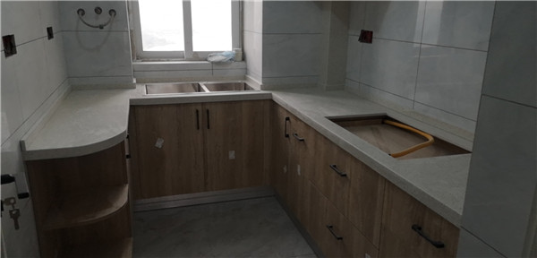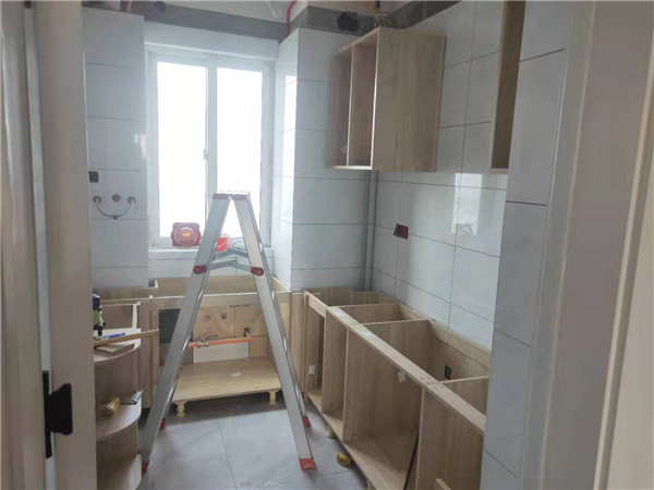 師傅們加班加點趕工,大部分已經(jīng)完工。裁板由專業(yè)設(shè)備制作,沒有爆邊,更完美。櫥柜門板等為平安樹品牌,有高級的藍(lán)光防偽標(biāo)識哦。