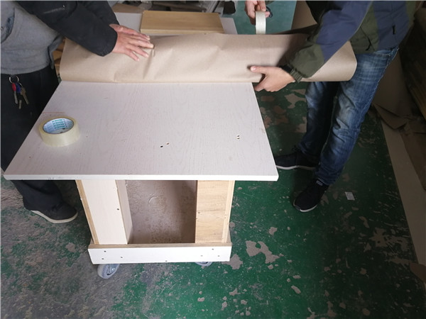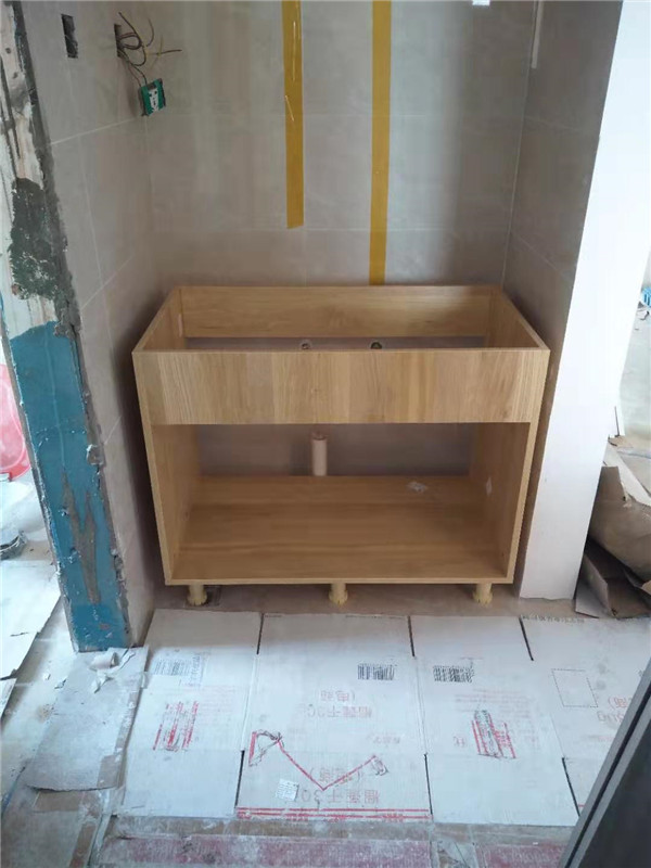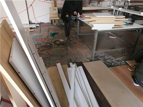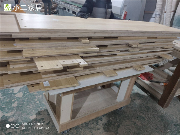 開始制作啦!柜體裁板中,板材使用平安樹實木多層板E0級制作,進入生產就快啦