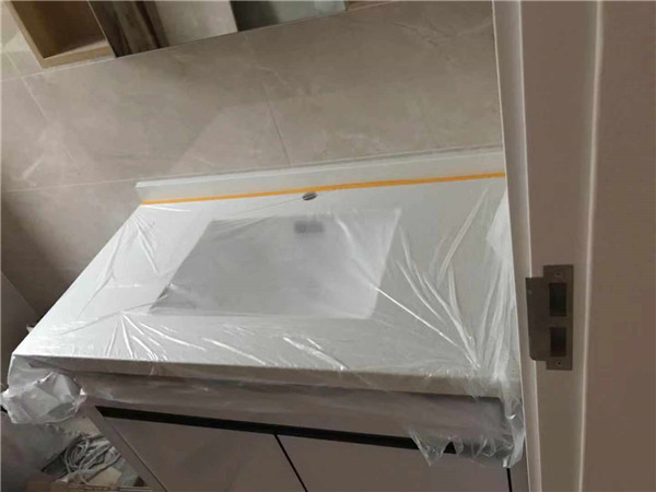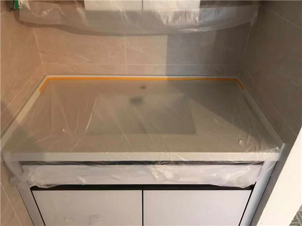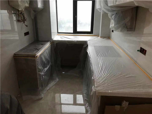 臺面安裝完畢,還有一小塊臺面師傅再處理一下就安裝好