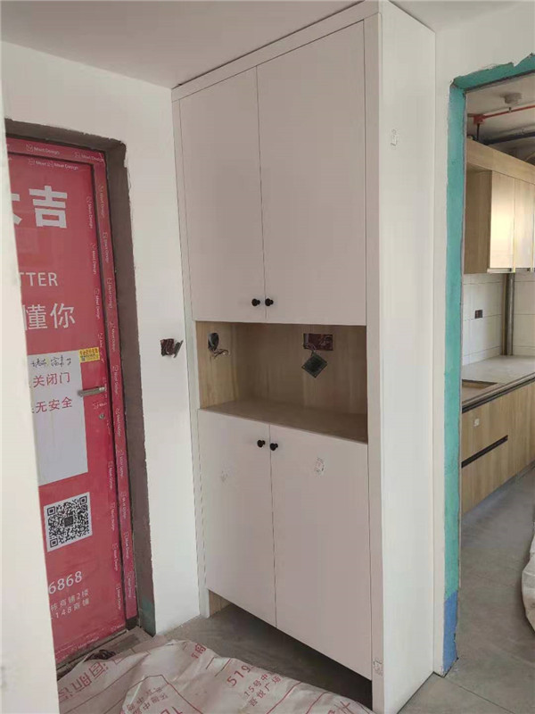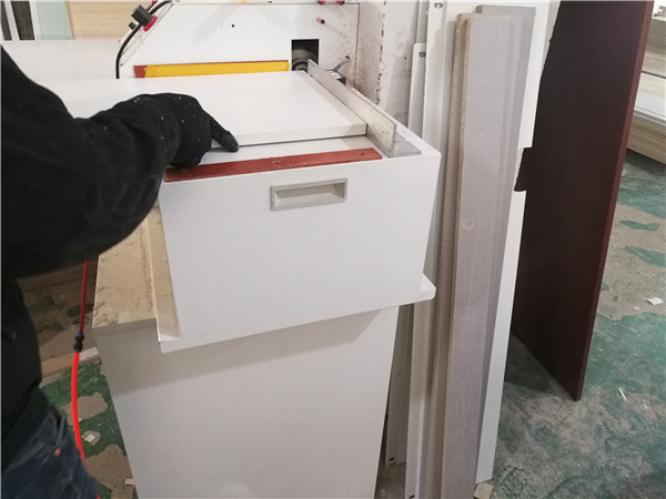部分門板抽面倒角中,倒角的好處:第一整體效果美觀,第二以防后期開門磕碰到。