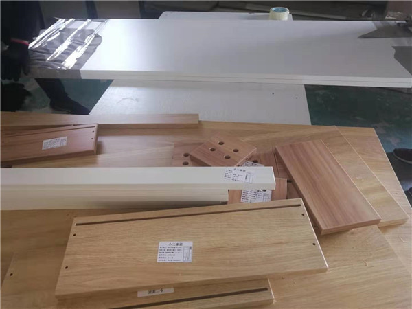 開始封邊啦,封邊采用法國波士熱熔顆粒膠,設(shè)備溫度達(dá)到200°C封出來的邊牢固,沒有爆邊,完美無瑕。每塊板上都貼有小標(biāo)簽,方便后期安裝師傅安裝,封邊條上都帶有“優(yōu)端”logo的哦!方便后期售后。