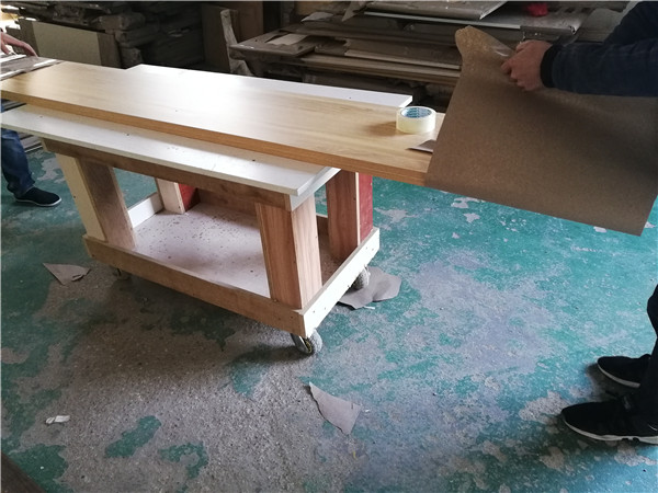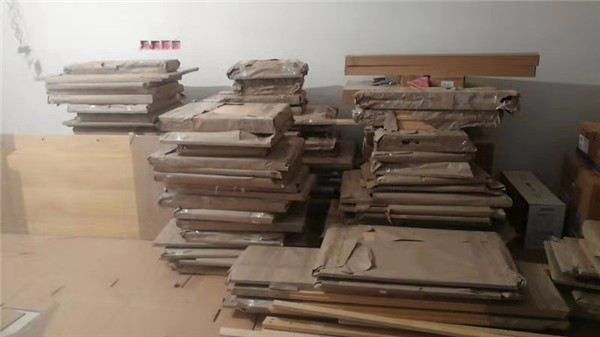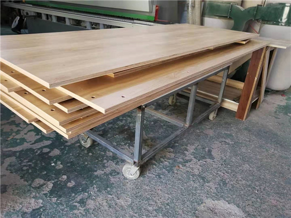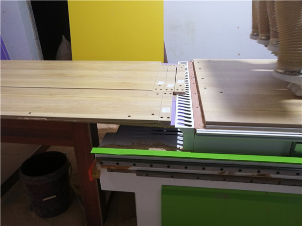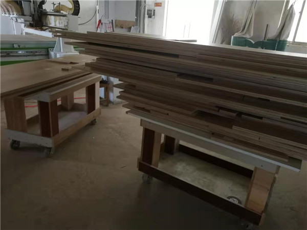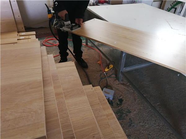 開始制作啦!柜體裁板中,板材使用平安樹實木多層板,清水橡木E0級制作,有高級的藍光防偽標識哦!這些板還只是部分,任務艱巨啊!