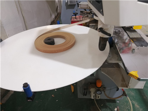 開(kāi)始封邊啦,封邊采用法國(guó)波士熱熔顆粒膠,設(shè)備溫度達(dá)到200°C封出來(lái)的邊牢固,沒(méi)有爆邊,