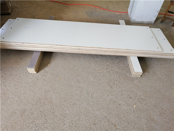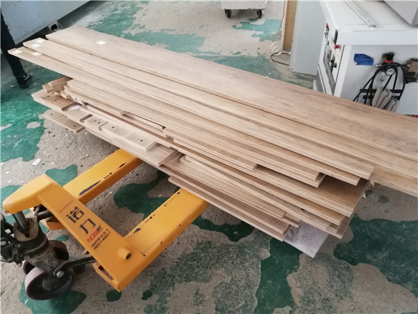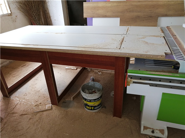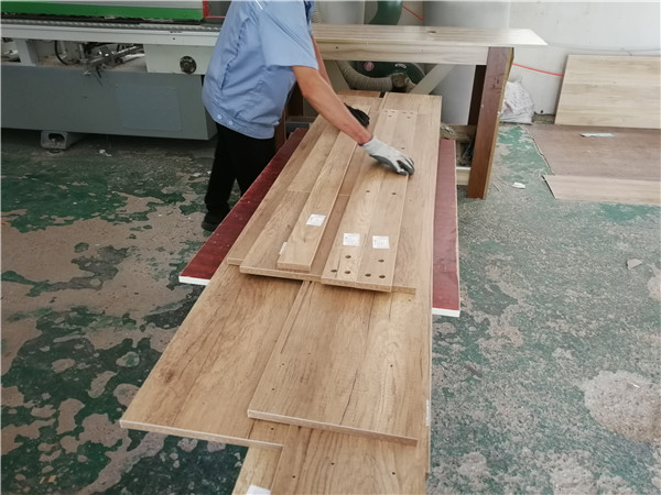 裁板進行中,板材使用平安樹仿古布紋、暖白實木多層板E0級制作,帶有高級的藍光防偽標識,更安心!