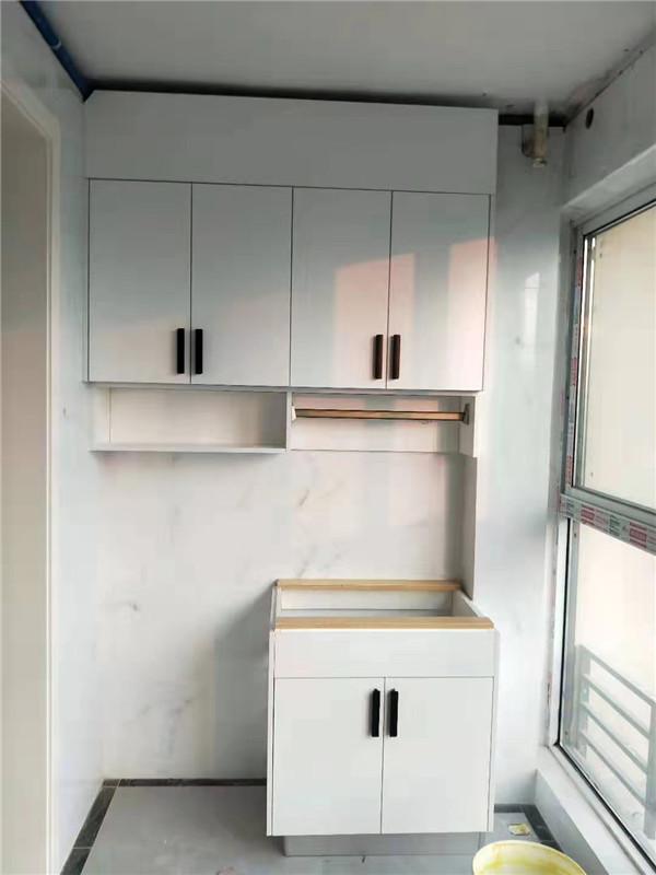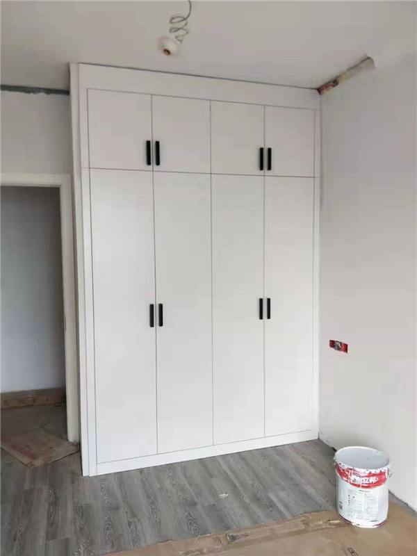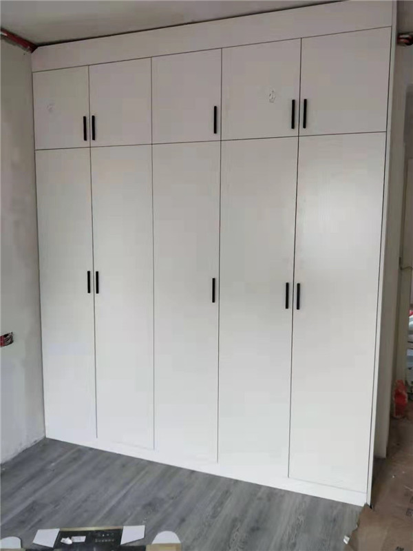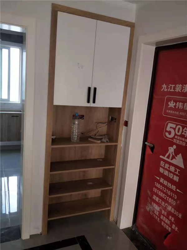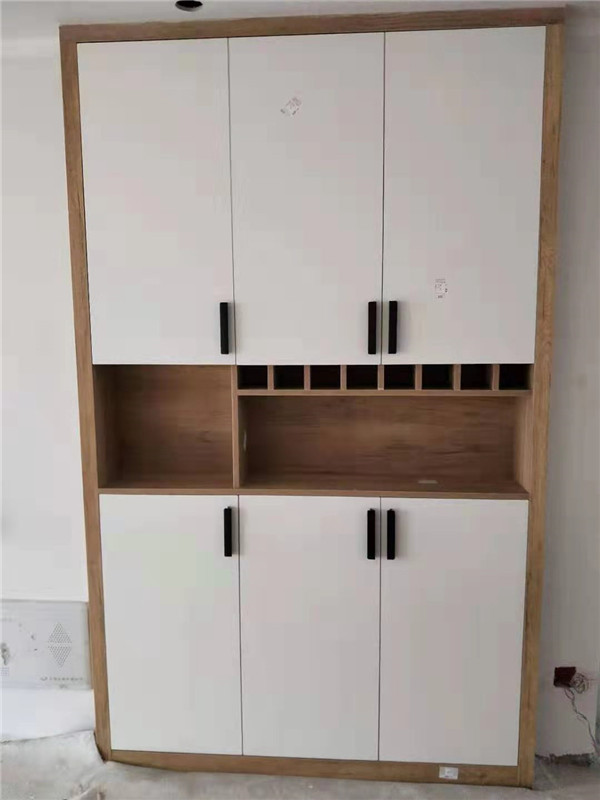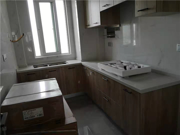 柜子安裝完畢,顏色都比較統(tǒng)一,看著很大方簡潔。師傅沒有把廚房拍到,等臺面安裝完工,再一睹為快吧