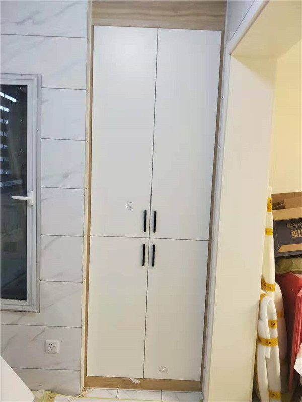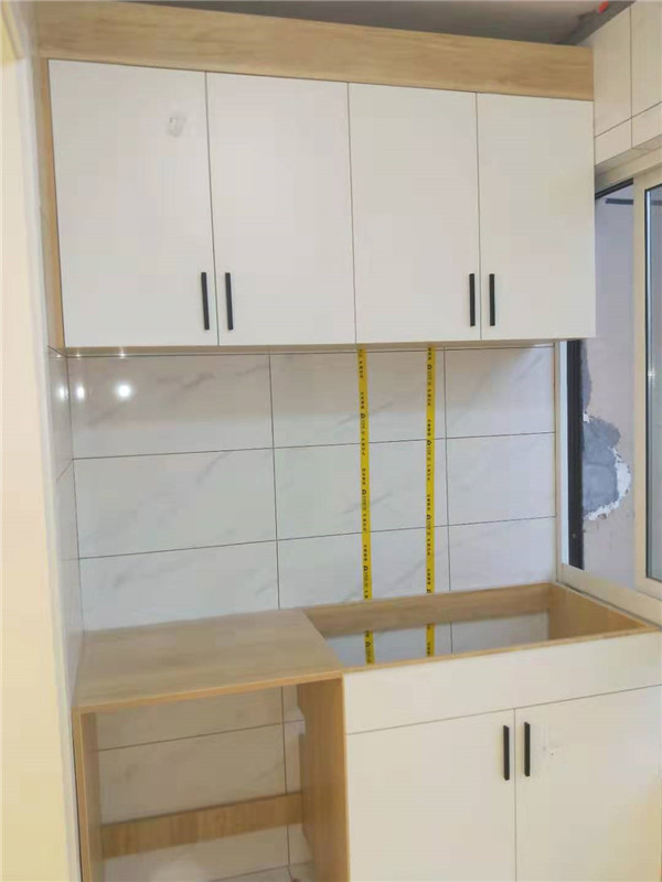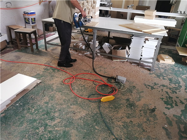 部分門板抽面倒角中,倒角的好處:第一整體效果美觀,第二以防后期開(kāi)門磕碰到。