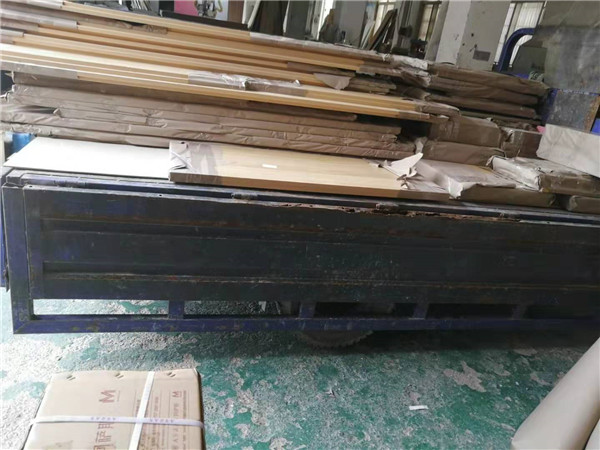 開(kāi)始封邊啦!封邊采用法國(guó)波士熱熔顆粒膠,設(shè)備溫度達(dá)到200°C封出來(lái)的邊牢固,沒(méi)有爆邊,完美無(wú)瑕。每塊板上都貼有小標(biāo)簽,方便后期安裝師傅安裝