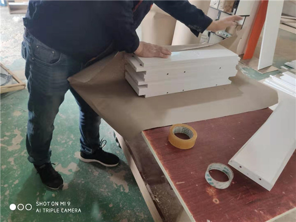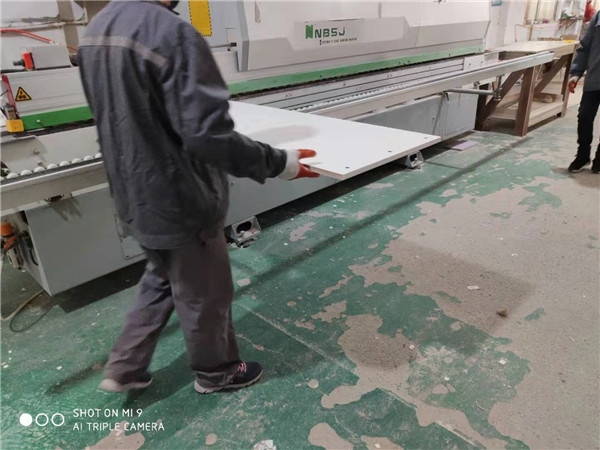 封邊繼續進行時,部分柜體已封邊完畢,打包中