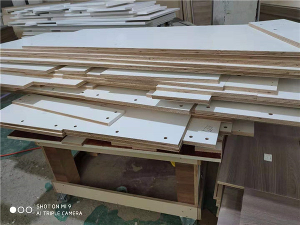 開始制作啦!專業設備裁板,沒有爆邊。板材使用平安樹實木多層板E0級制作,有高級的藍光防偽標識哦