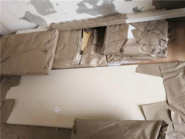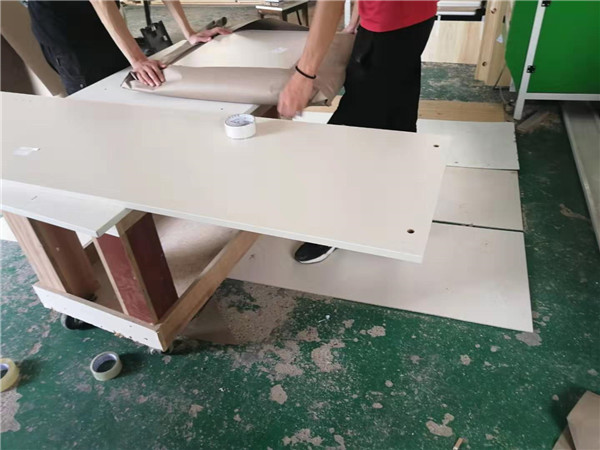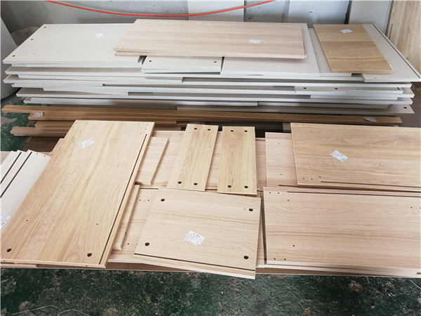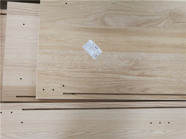師傅加班已經把封邊結束了,打孔也搞定了,封邊采用法國波士熱熔顆粒膠,設備溫度達到200°C封出來的邊牢固,沒有爆邊,完美無瑕。每塊板上都貼有小標簽,方便后期安裝師傅安裝。