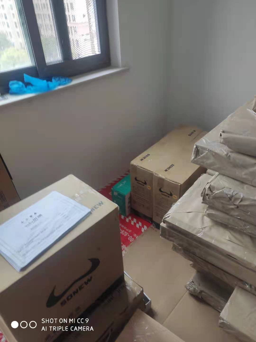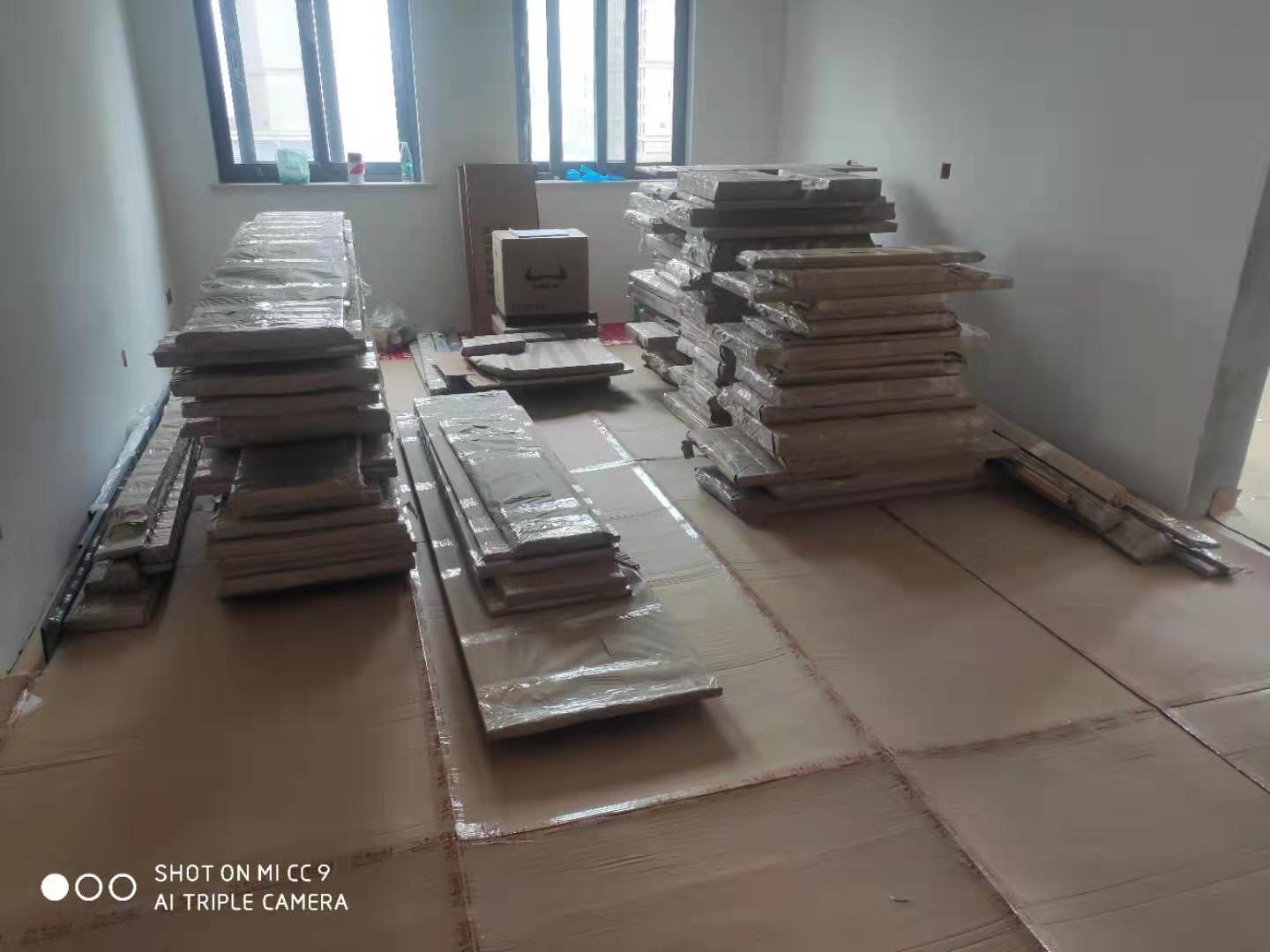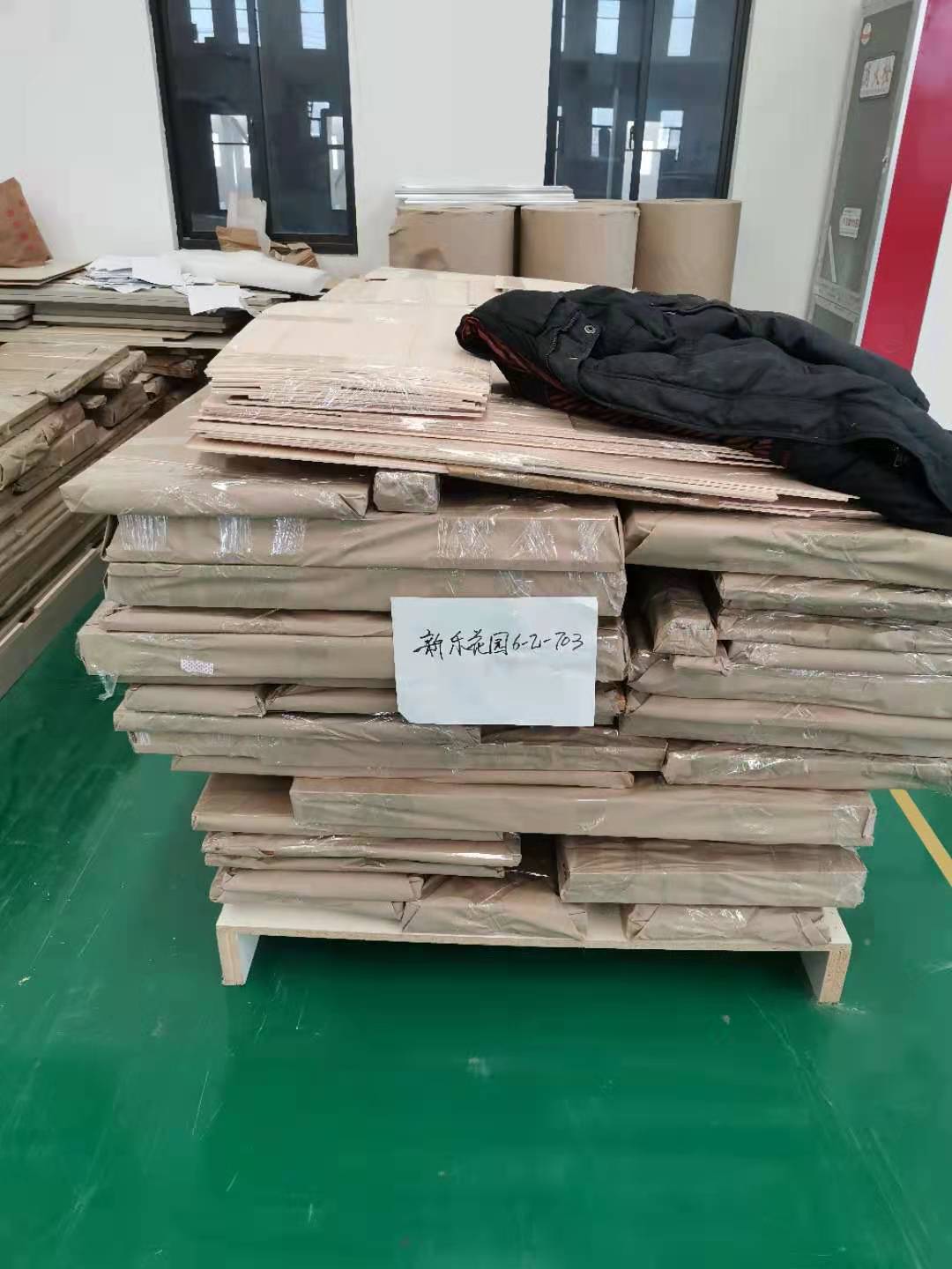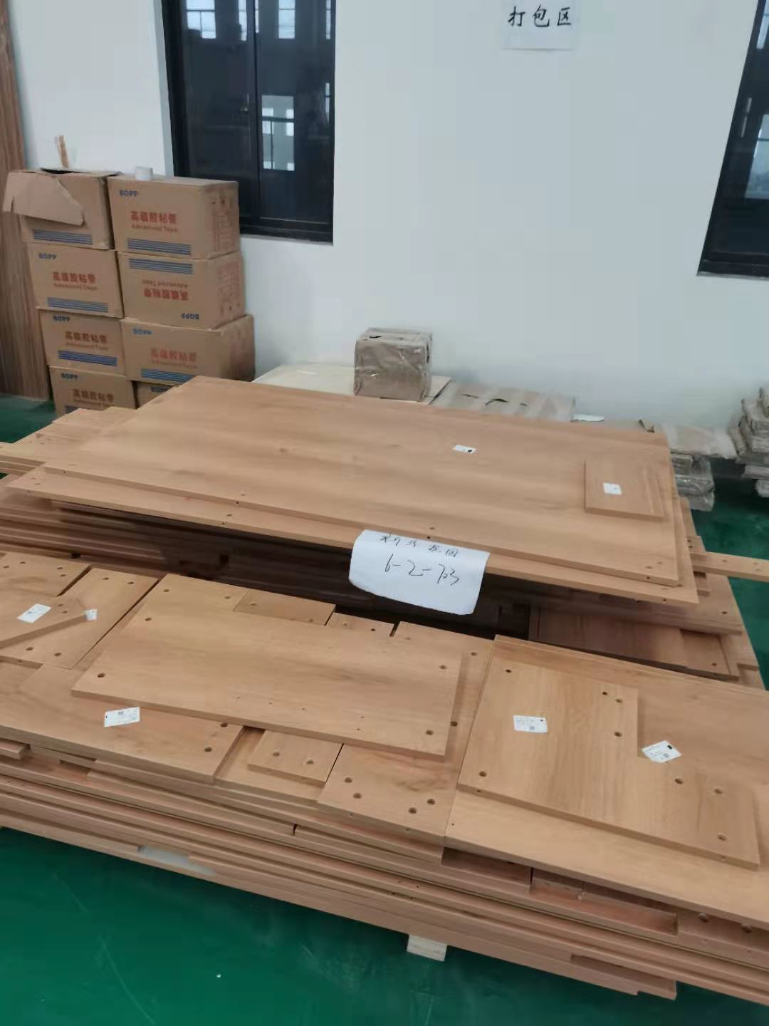 已經生產完的板材堆放在一起等待打包