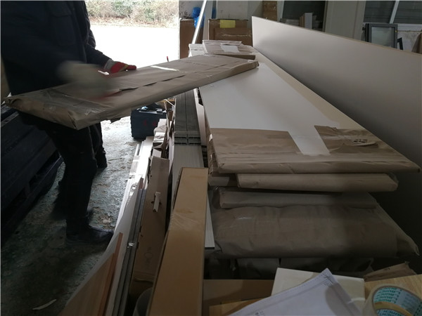 沒有爆邊,完美無瑕。每塊板上都貼有小標(biāo)簽,方便后期安裝師傅安裝