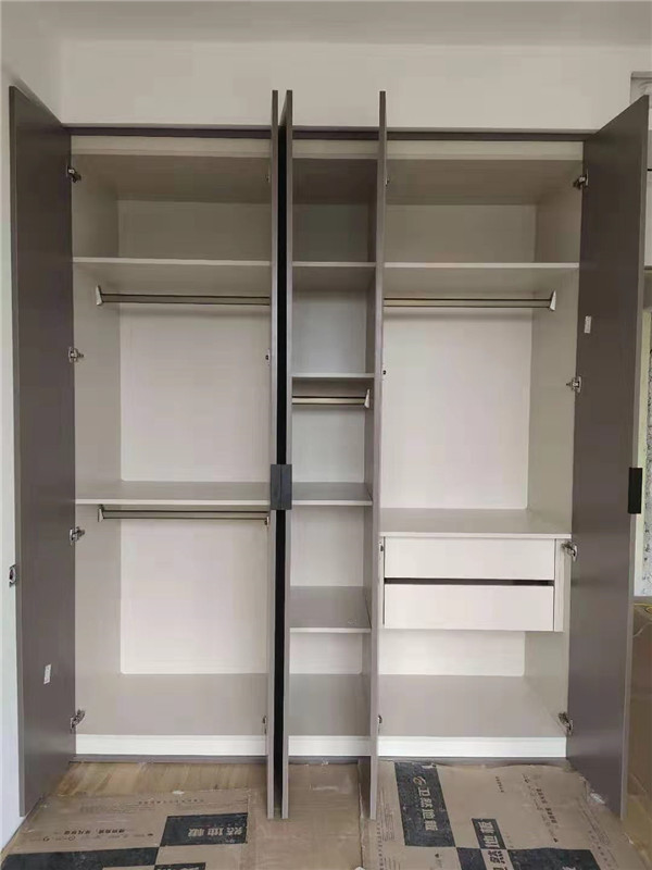 柜子安裝完畢啦,灰色衣柜顏值很高哦!nice。