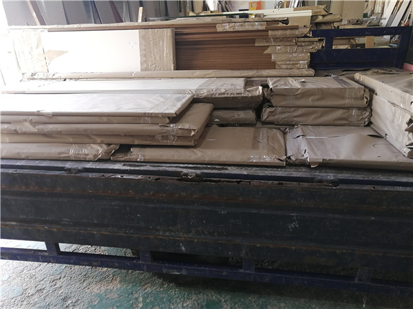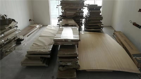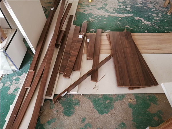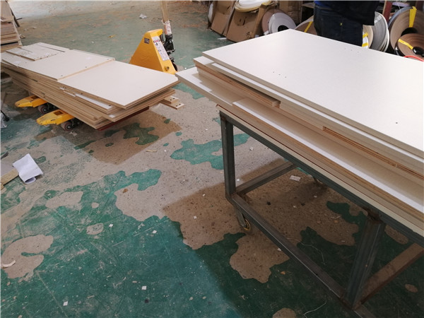開始制作啦!柜體裁板中,板材使用平安樹實木多層板,皮紋E0級制作,有高級的藍光防偽標識哦