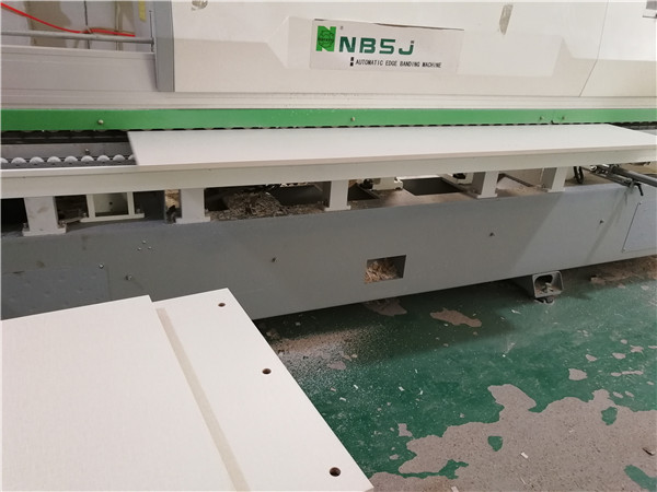 裁板封邊同時進行,動作很迅速喲。封邊采用法國波士熱熔顆粒膠,設備溫度達到200°C封出來的邊牢固,沒有爆邊,完美無瑕。
